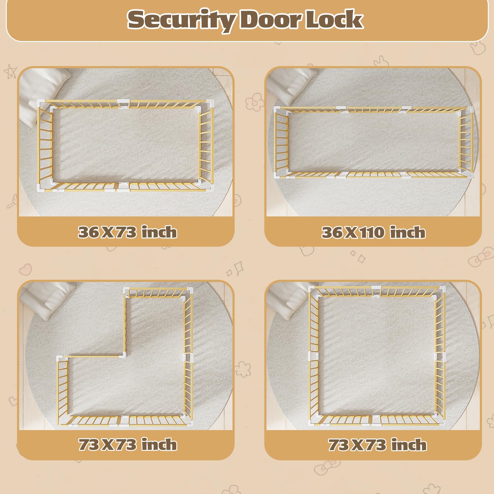 Safety design: playpen for babies and toddlers kids, baby gatetriple safety locks + scientific height spacing design, with non-slip pads, all-round construction of safety barriers, so that parents have more peace of mind.