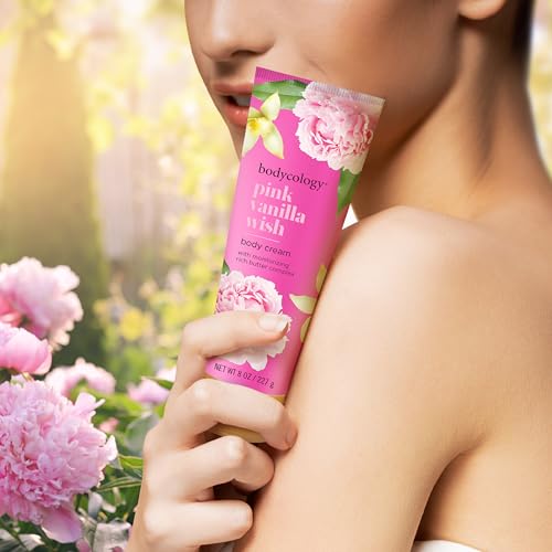 Say bye to dry and take your get-ready routine to the next level when you moisturize with Bodycology Pink Vanilla Wish Body Cream. Your skin will thank you for using our ultra-hydrating and non-greasy formula of shea butter, cocoa butter, and jojoba oil. When you lather your skin in our Pink Vanilla Wish Cream, youβll surround yourself in a bouquet of pink peonies, with base notes of warm vanilla, and almond to round it out. Use this fragranced cream as a form of special self-care or make it a part of your daily beauty ritual. You can layer this scent with the Bodycology beauty products you love like the matching Pink Vanilla Wish Fragrance Mist or with our other body sprays to create your own signature scent. All Bodycology products are paraben, phthalate, and cruelty-free.