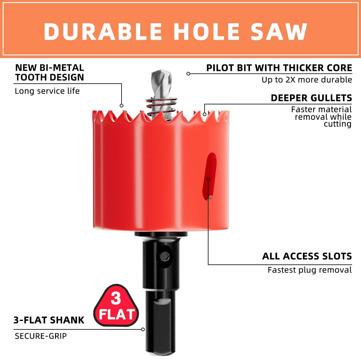 Durable and Long-Lasting: These hole saw drill bits are crafted with high-quality bi-metal to ensure exceptional durability and longevity. Designed to withstand heavy-duty drilling tasks, they feature a variable positive tooth configuration that enables fast and smooth cutting, reducing vibrations and providing a lasting sharp cutting edge.