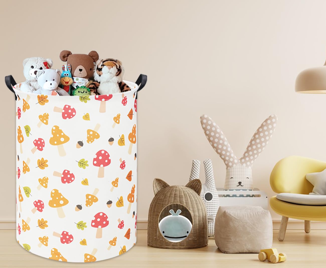 Material: The kids toy hamper is made of linen & cotton fabric. Waterproof PE coating inner,lightweight and durable. Our storage bin equip with two handles, moving conveniently.