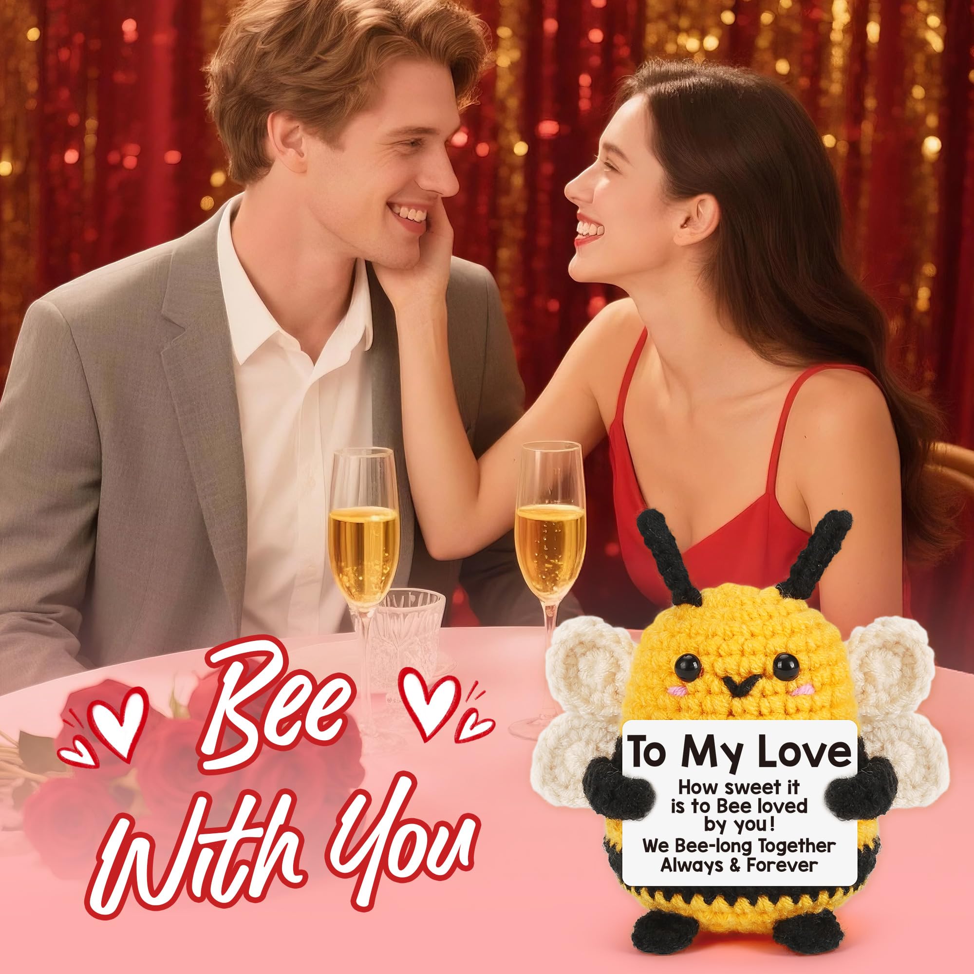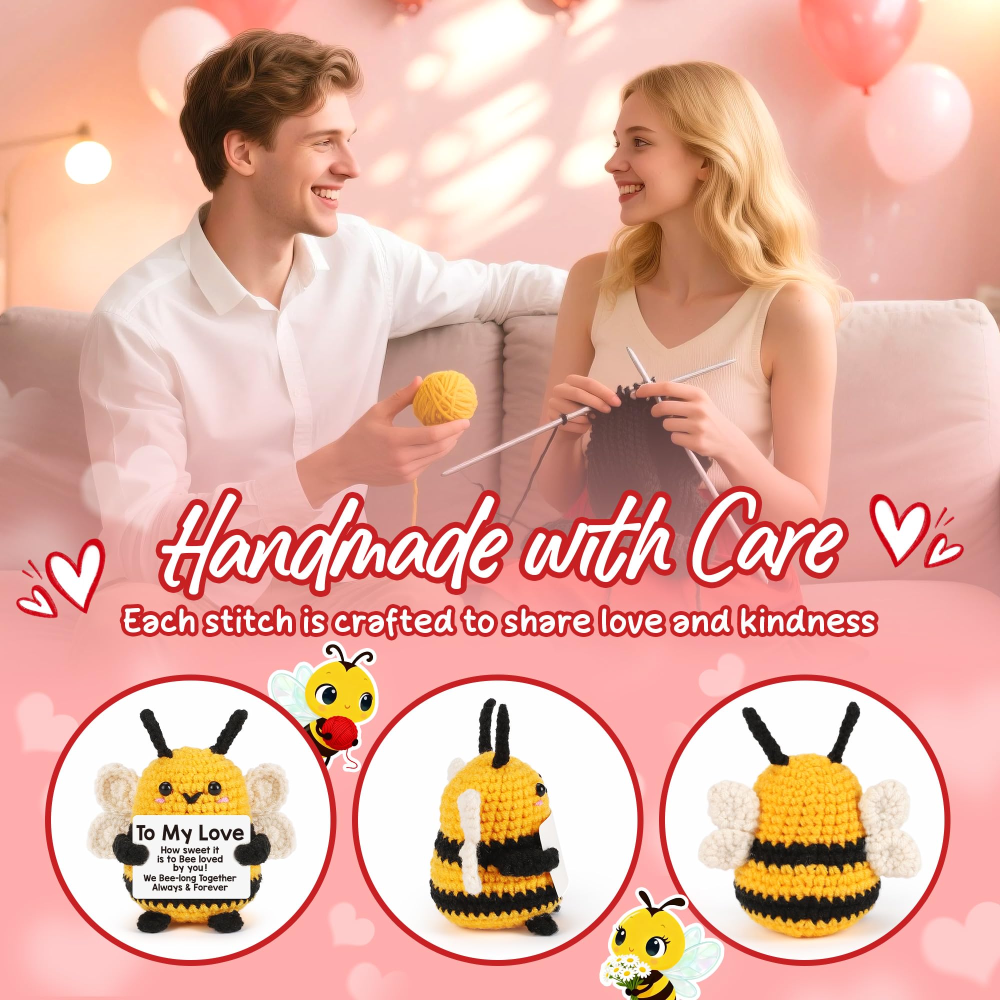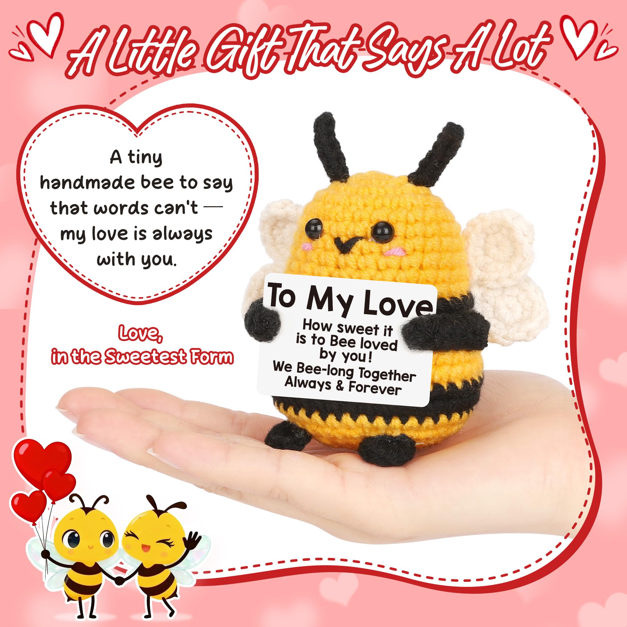 Bee Valentines Gift & Love Gift – Handmade Crochet Bee Plush A meaningful bee valentines gift for couples who love cute crafts; Includes a thoughtful card that reads: “To My Love – How sweet it is to Bee loved by you.” Perfect bee love gift for anyone you adore
