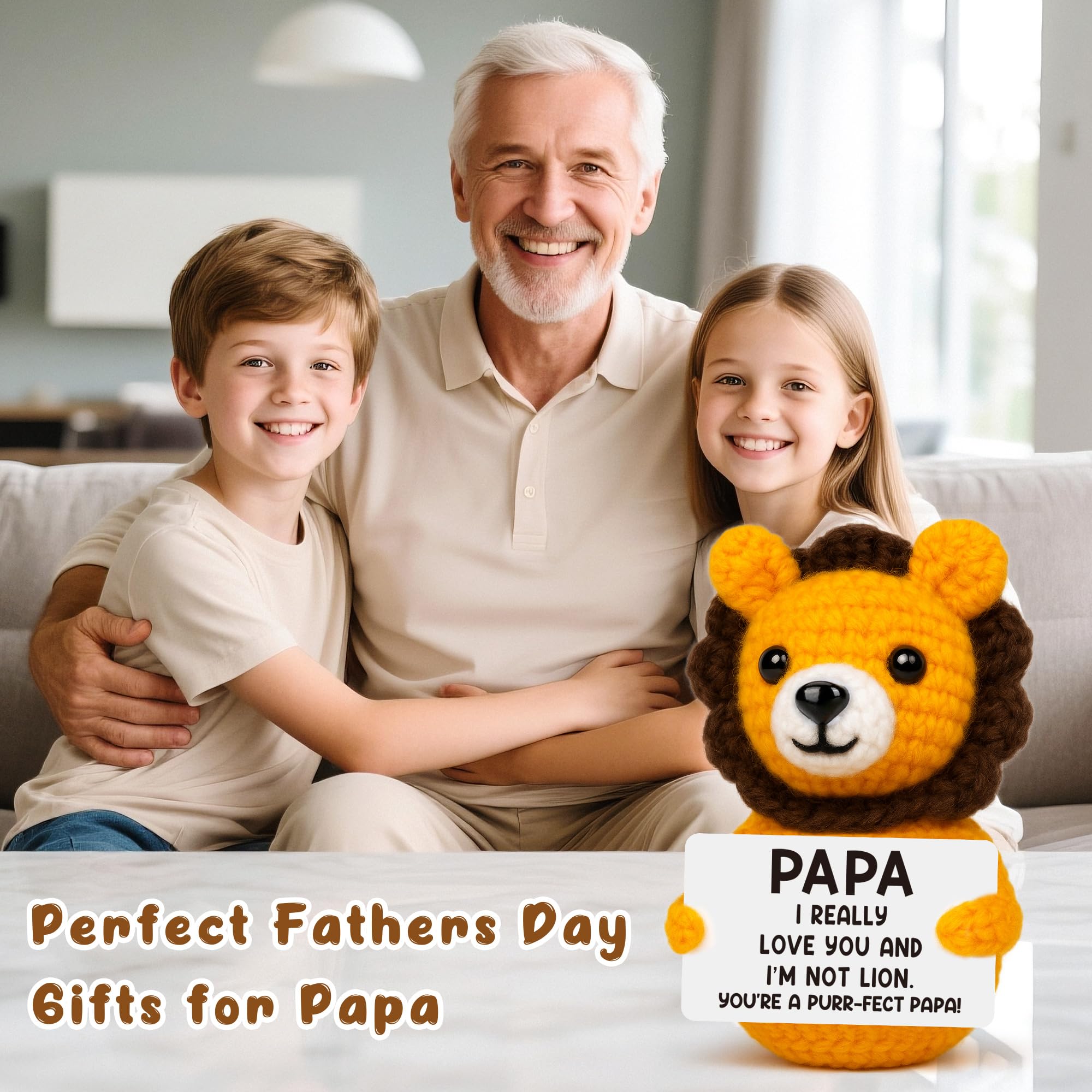 Emotional Support & Stress Relief Gift for Grandpa-- Whether your grandpa is having a tough day or celebrating a joyful moment, this mini lion provides gentle emotional support. With its playful design and heartfelt card—“PAPA I REALLY LOVE YOU AND I'M NOT LION”—it helps ease stress, uplifts spirits, and nurtures mental well-being with a touch of humor