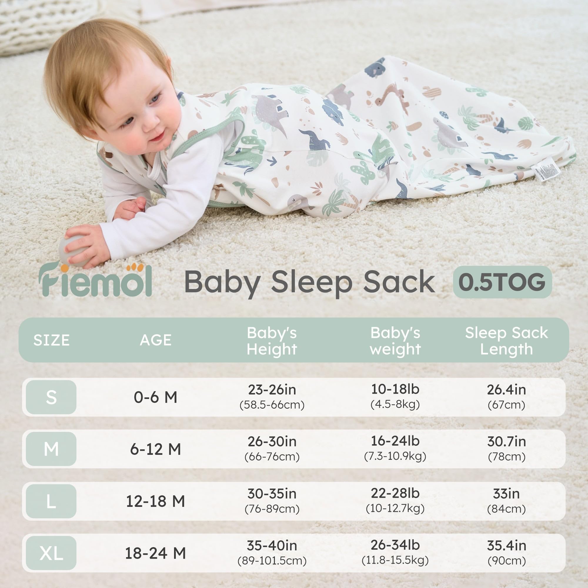 100% Cotton: Made from 100% cotton, our baby sleep sack applys top 10% of the premium cotton, which is more breathable and soft on delicate skin. 0.5 tog fit for moderate seasons. With this wearable blanket, your baby would neither get sweaty nor catch a cold.