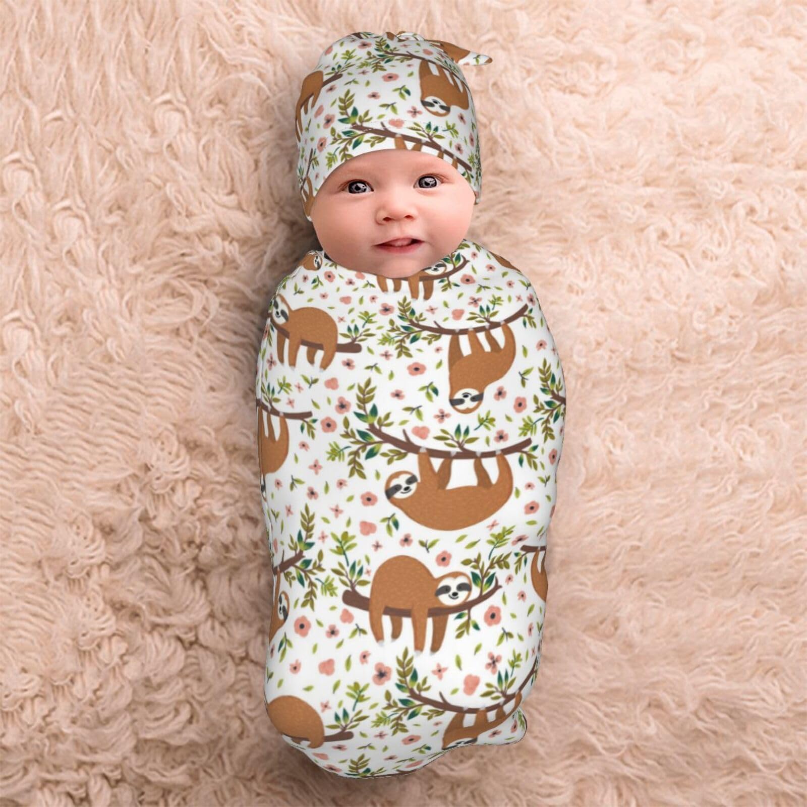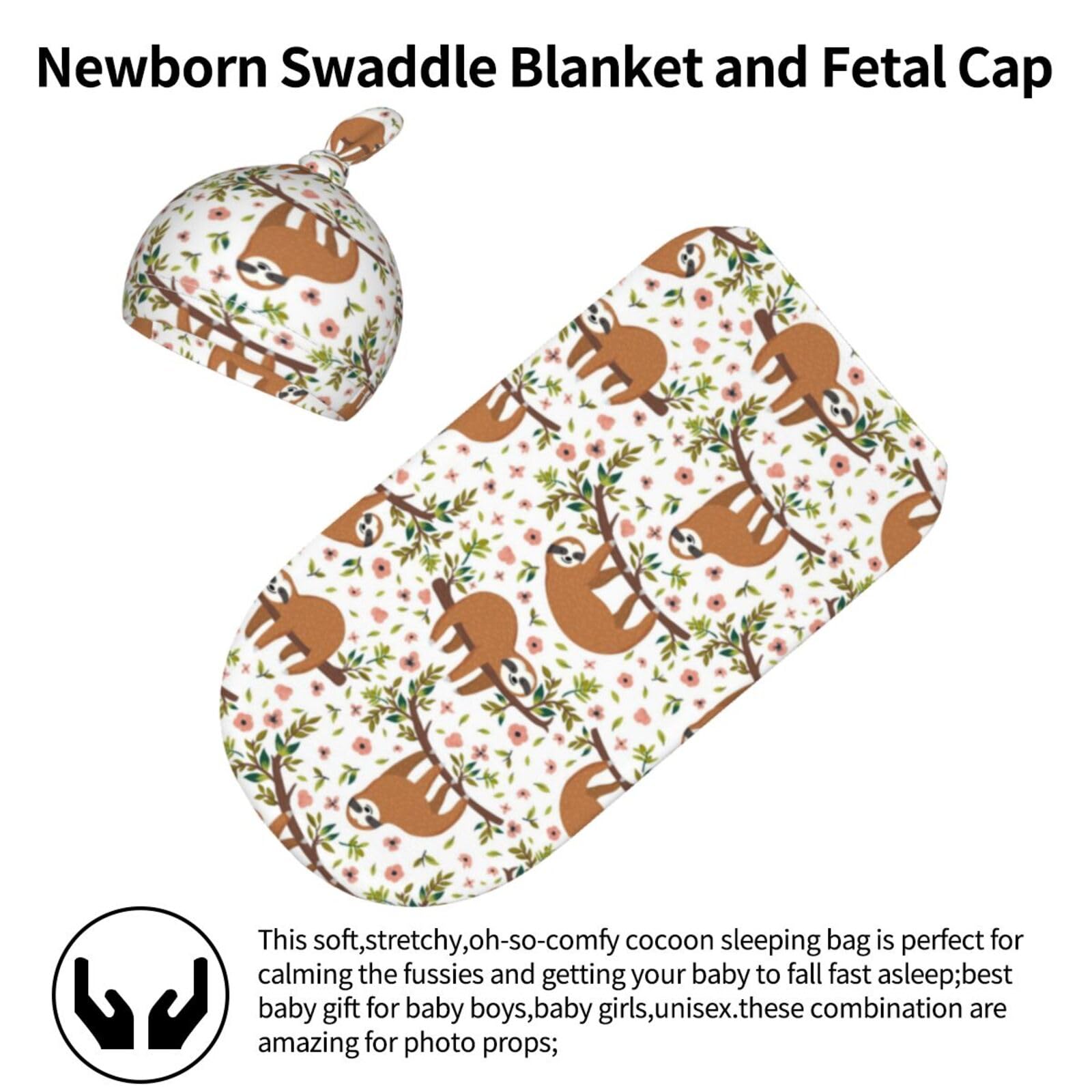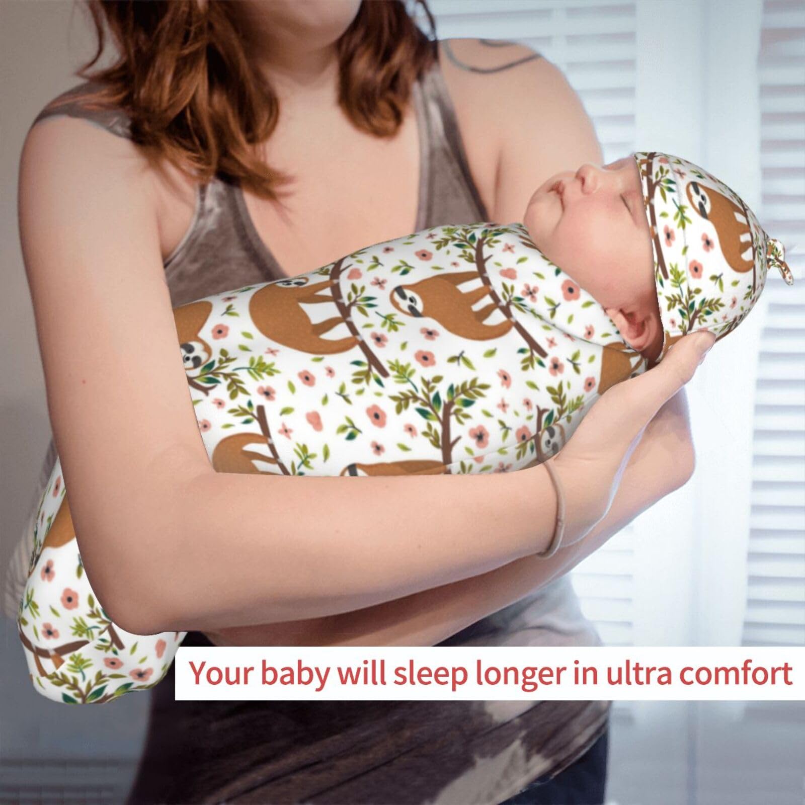 SWADDLE SET : The cute sloths swaddle bag has no zipper or hidden button to protect the baby's delicate body.By swaddling babies like little burritos, it'll create a snug and familiar feeling to calm fussiness, you can rest easy