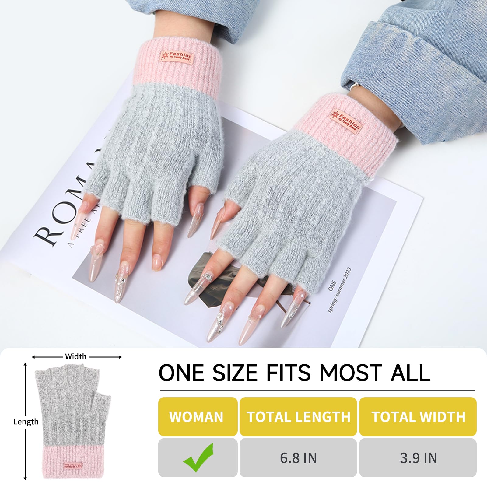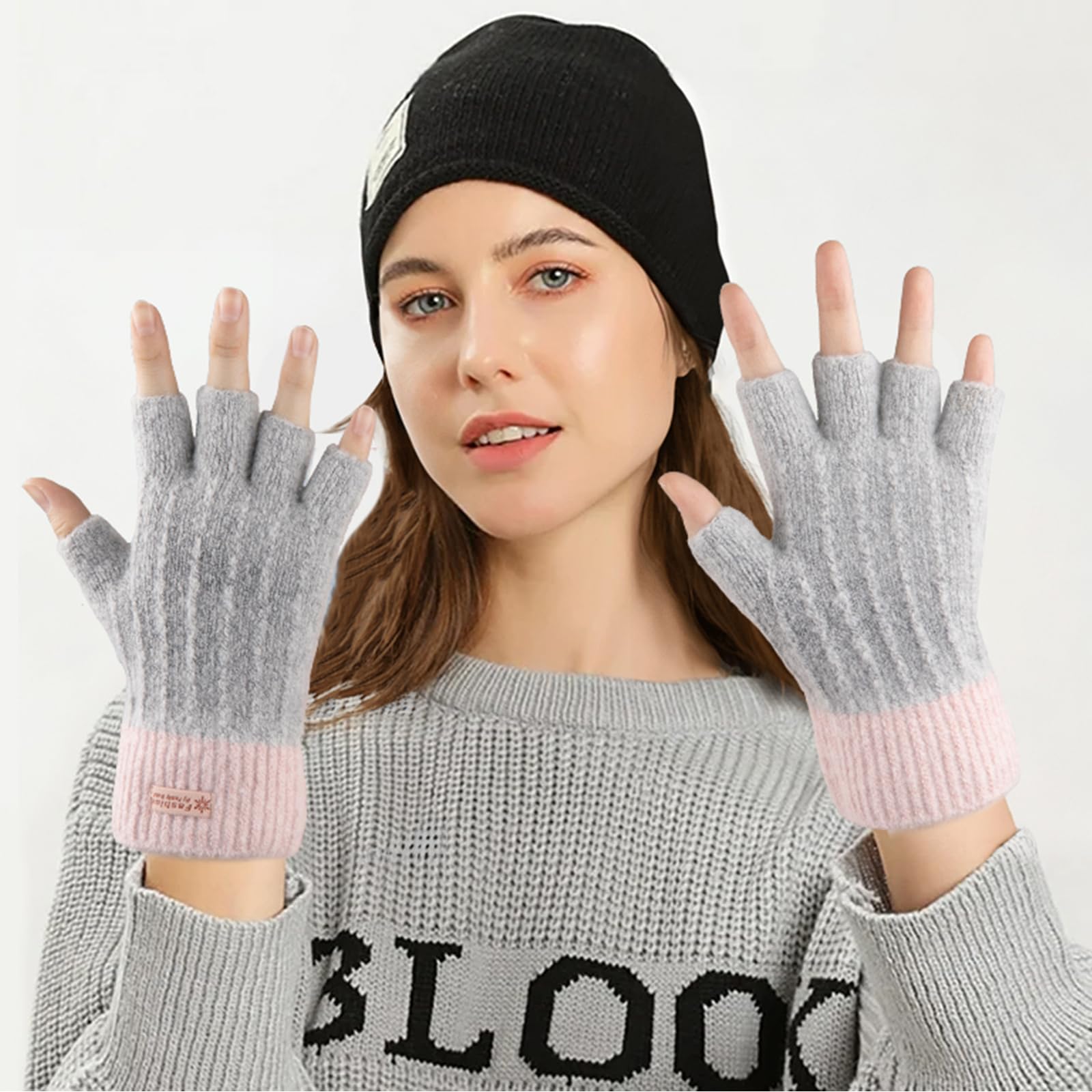 [STYLISH COLOR & PRACTICAL GLOVE]: There are black fingerless gloves women, pink fingerless gloves, purple fingerless gloves, beige fingerless gloves, blue fingerless gloves and grey fingerless gloves. Our gloves feature unique and beautiful color blocking, which can match with your various winter outfits easily.