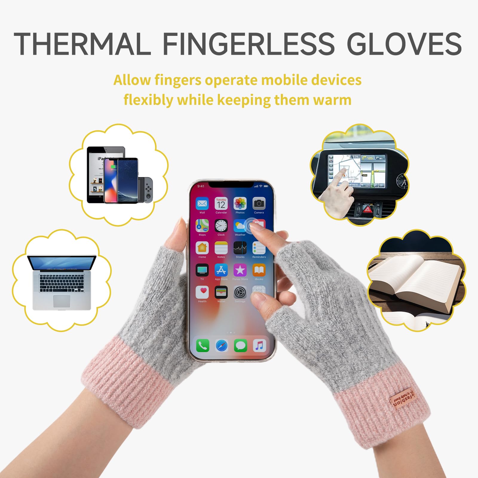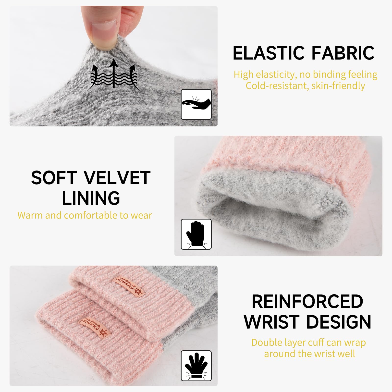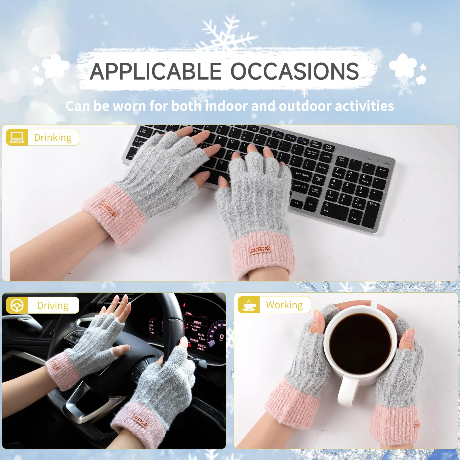 [CONVENIENT HALF FINGER GLOVES]: Our warm fingerless gloves for women with half-finger design for maximum flexibility. You can easily use your fingerless gloves for women warm without removing the winter knitted gloves during using computer or mobile phone, typing, texting, driving, working, learning, running and cycling.