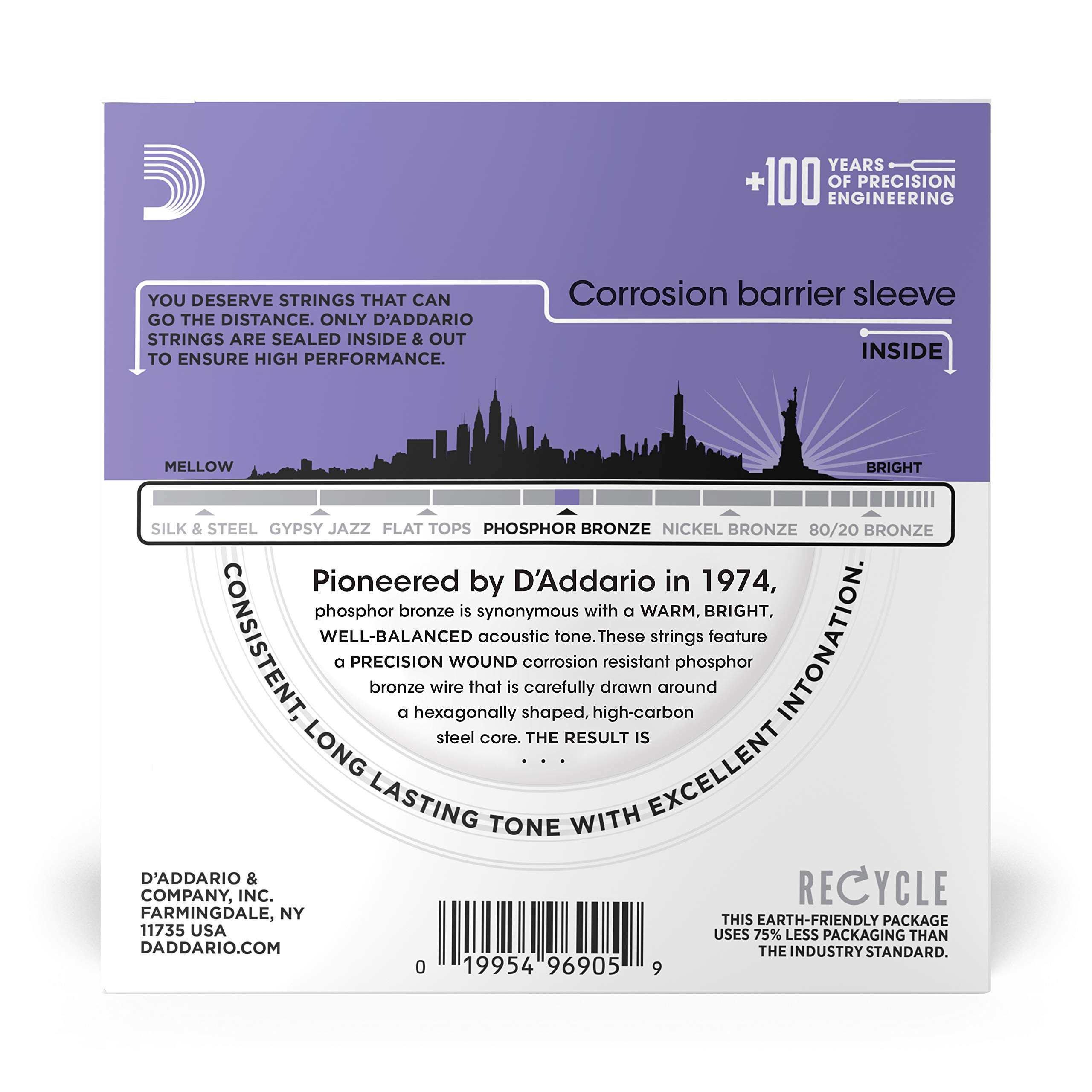 CORROSION-RESISTANT, PRECISION WOUND – D’Addario Phosphor Bronze acoustic guitar strings are precision wound with phosphor bronze wrap wire, over a hexagonal high-carbon steel core.