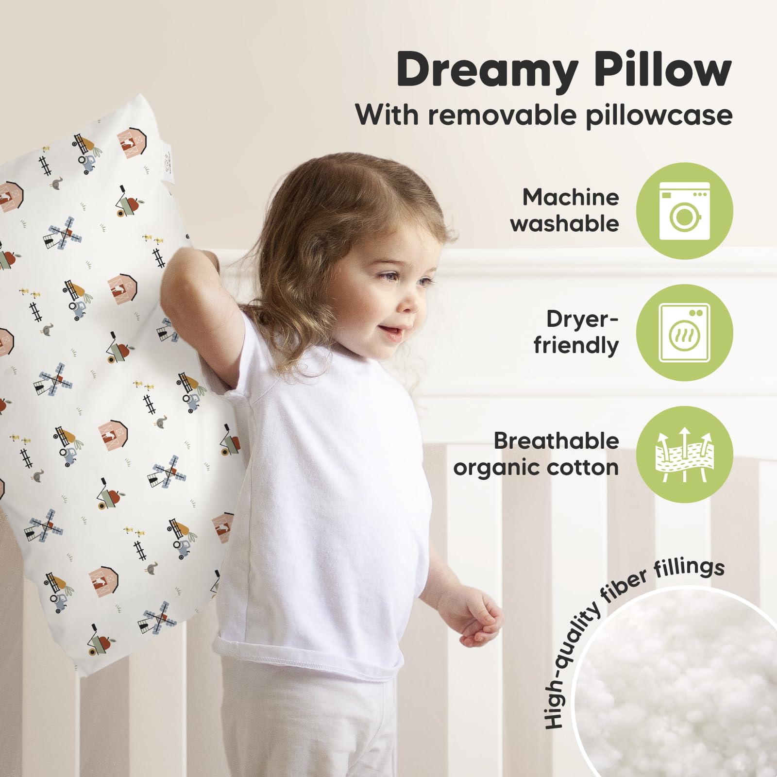 Natural Cotton - Our toddler pillowcase and cover are made of OEKO-TEX 100 Standard and GOTS Certified CU 1042833 Organic Cotton. This soft & breathable toddler pillow for kids is the perfect kid pillows for sleeping and travel pillow for 2 year old.
