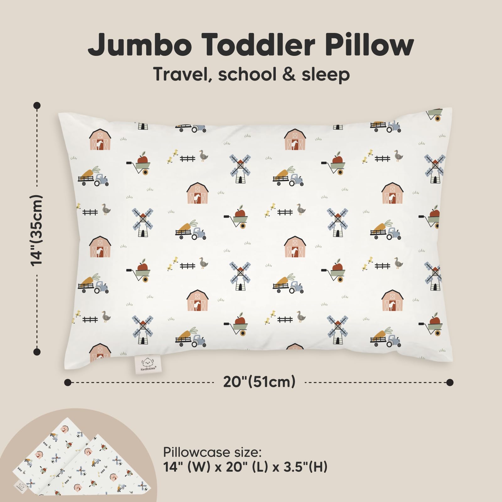 Ergonomically Designed – KeaBabies Jumbo Toddler Pillow 14x20, offers ergonomic support for healthy spinal alignment and all-night comfort. Note: Simply cold wash and tumble dry low to restore its fluffiness after opening from vacuum package.