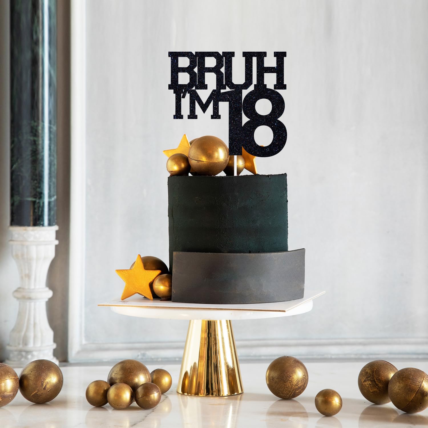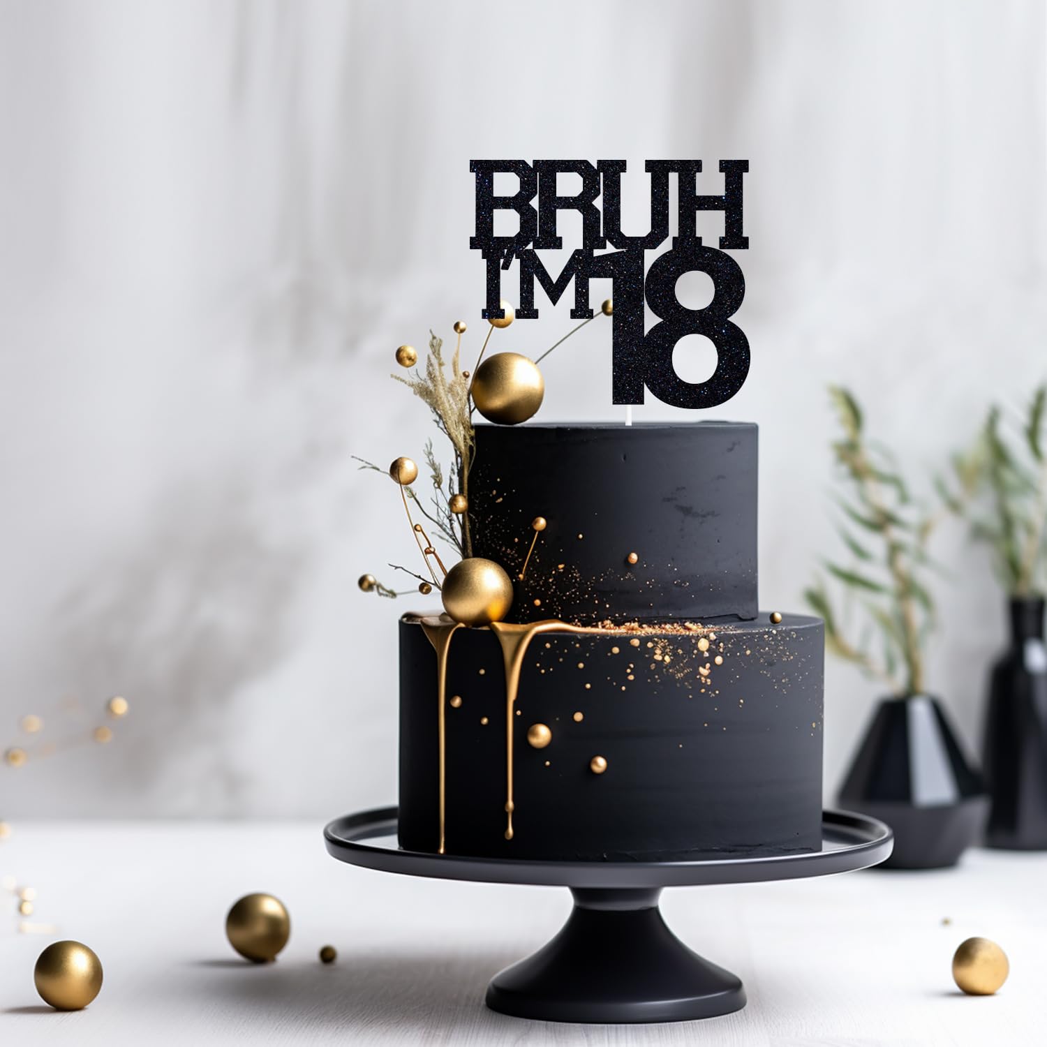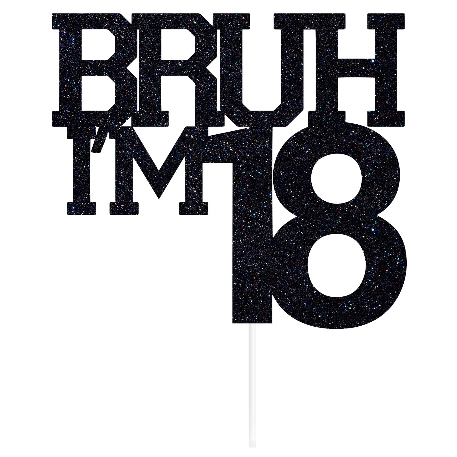 [18th Birthday Party Cake Topper]: Black glitter cake topper featuring "Bruh I'm 18" text for a stylish and modern birthday celebration.