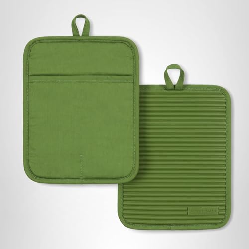 DURABLE, HEAT RESISTANT SILICONE: The KitchenAid Ribbed Soft Silicone pot holders are heat resistant up to 500 degrees Fahrenheit to safely shield hands from the heat while cooking and handling hot pans and dishes.