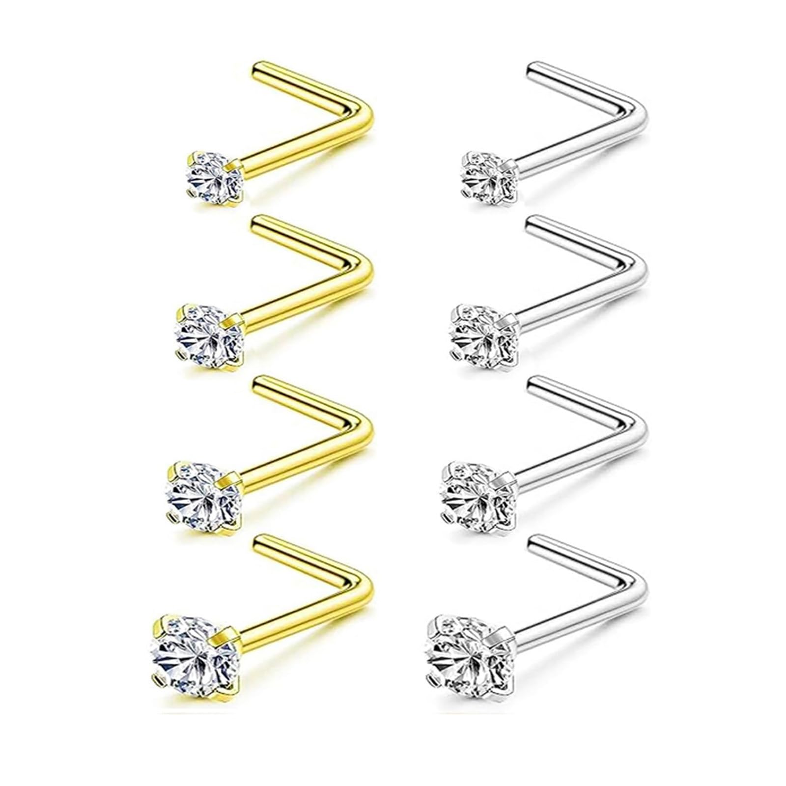 Hypoallergenic & Safe Material: Made of premium 316L surgical steel, these silver and gold nose studs are nickel-free and lead-free, offering ideal compatibility for sensitive skin. The high-polish electroplated finish ensures a lustrous, tarnish-resistant appearance
