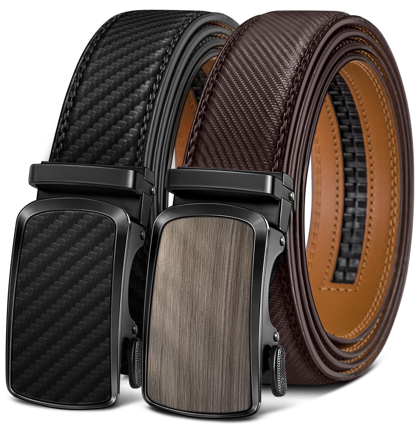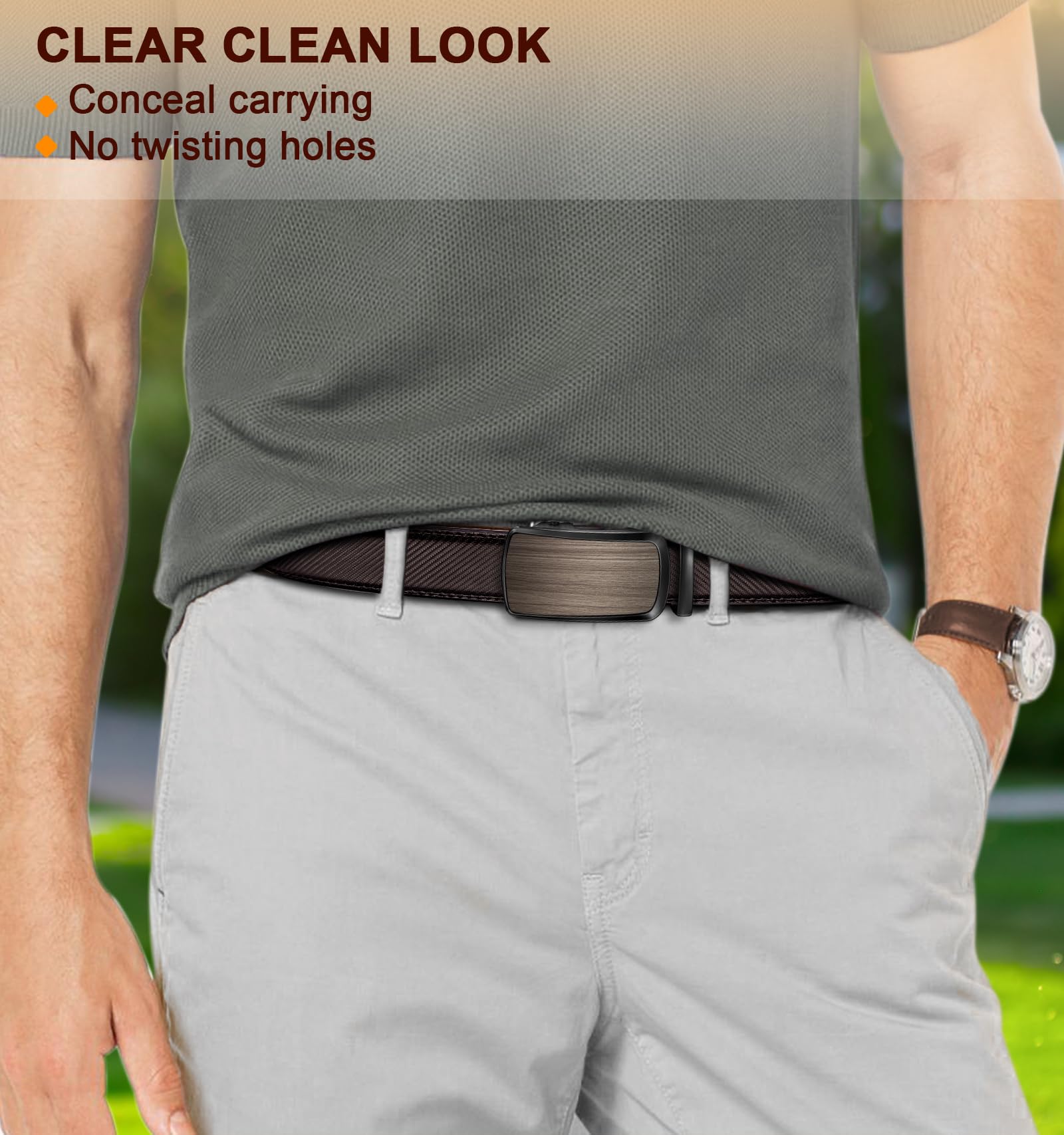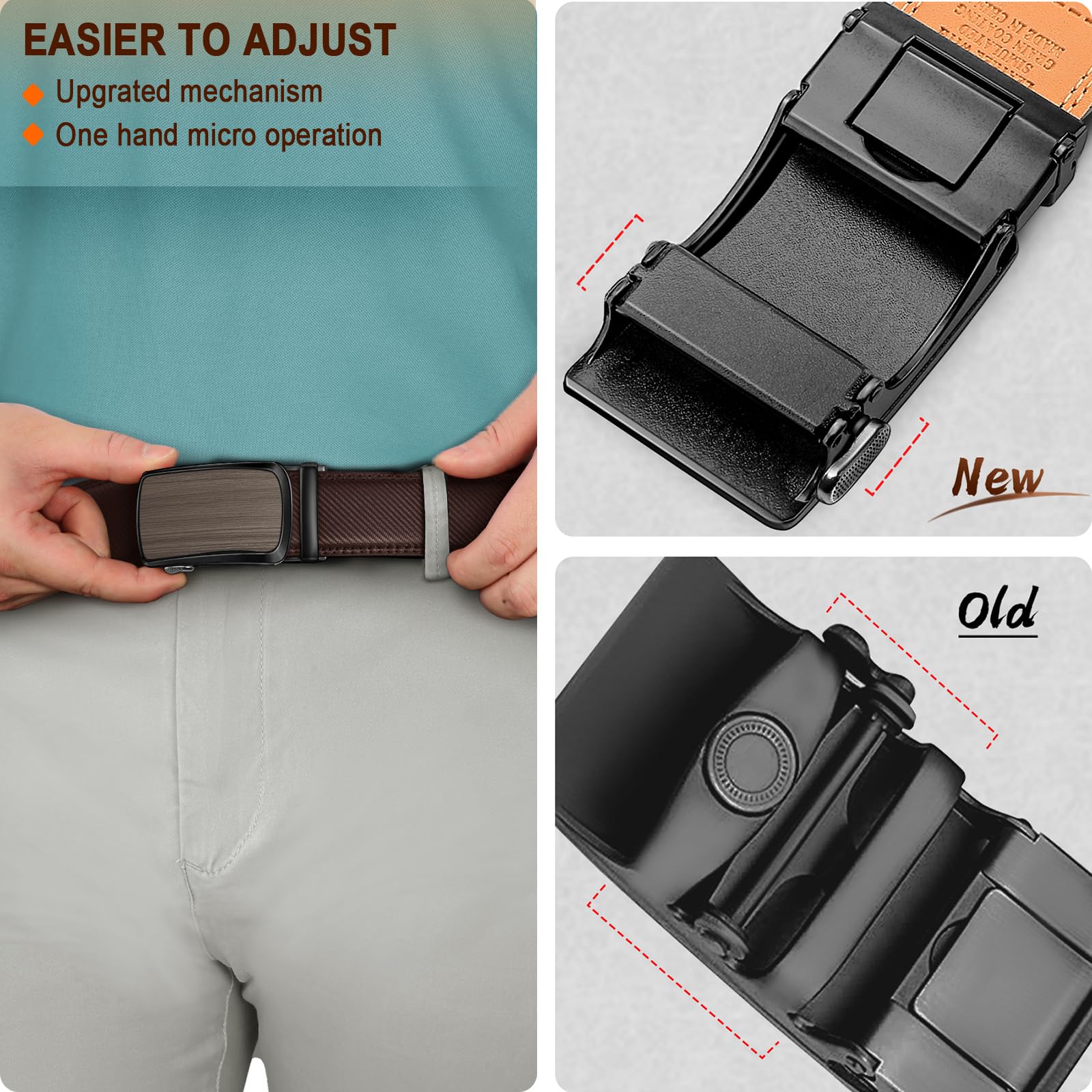 PRECIESE FIT--The Bulliant men's belt is installed an slide ratchet with 32 notches and each gapped at 1/4",with this belt,you can get an perfect fit any time for all-day comfort. Just say goodbye to the hassle of belts that are too tight or too loose;