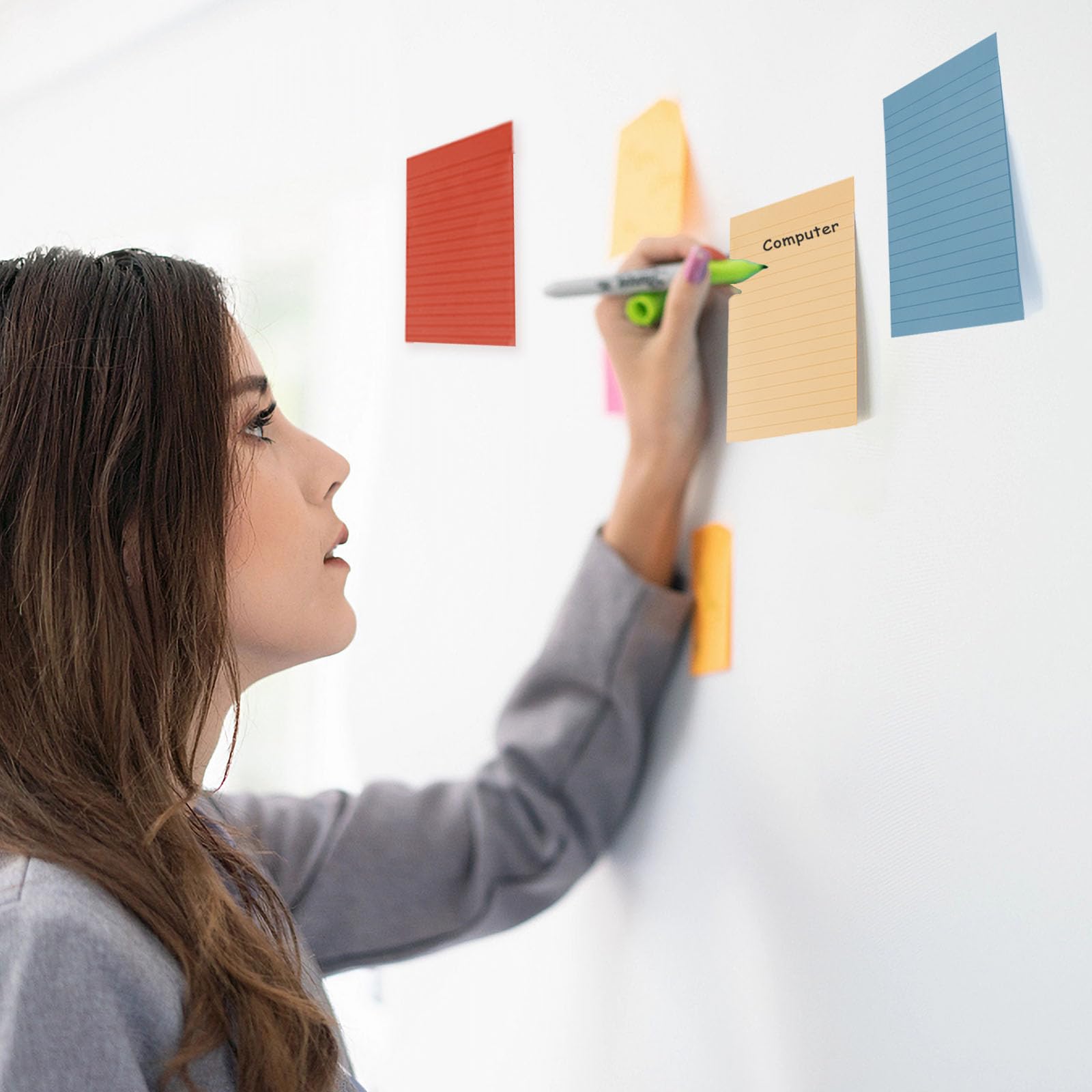 Quality Paper: lined sticky notes made with 80 GSM thicker paper, flat sticky notes are strong, stay on any surface without curling. Smooth writing, No ink-seepage. accommodates pens, pencils, markers, and other writing tools