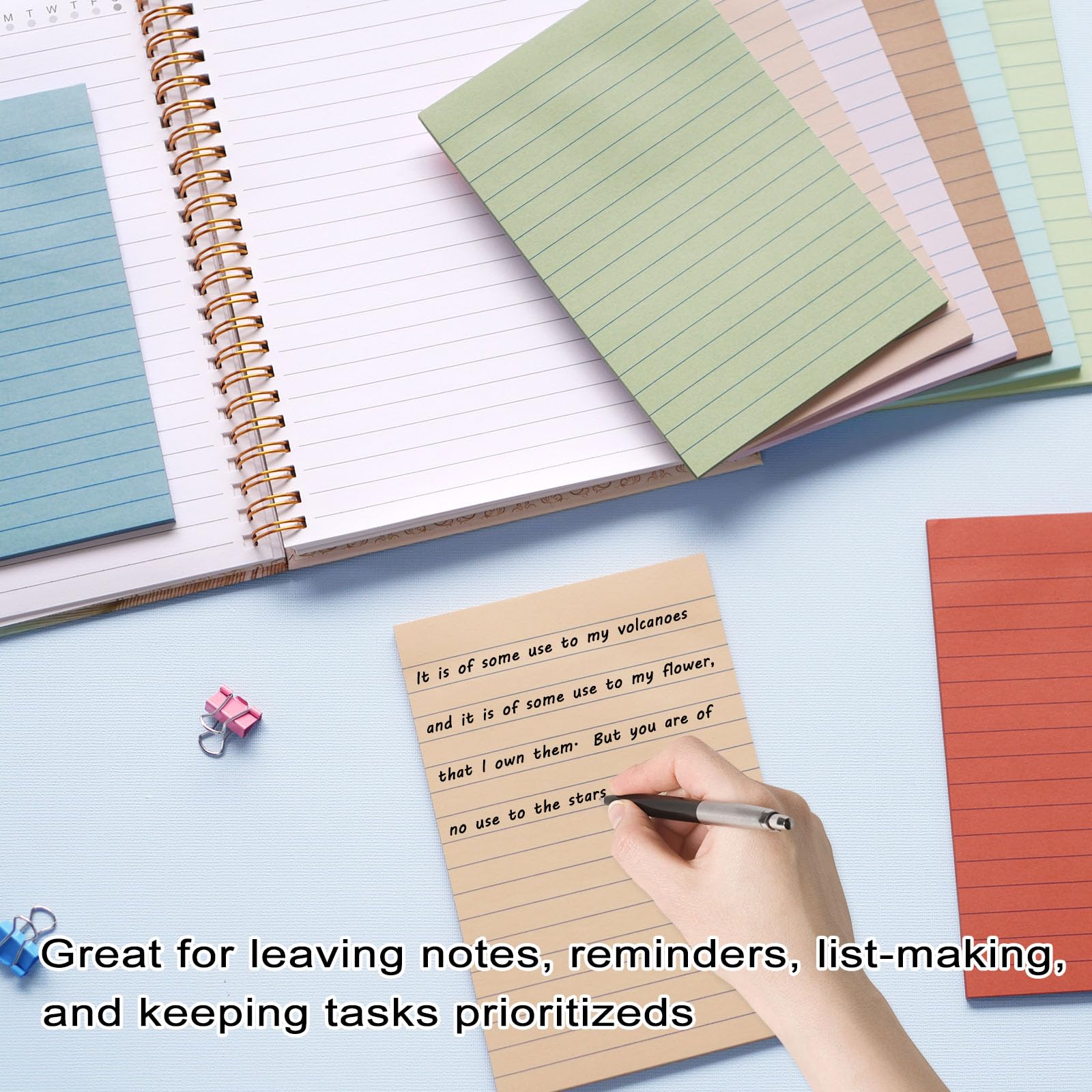 Portable Large Size: Aesthetic lined sticky notes 4x6 inch, 9 pads/pack, 35 Sheets/pad. Large size lined sticky notes have enough room for writing neatly lists or notes