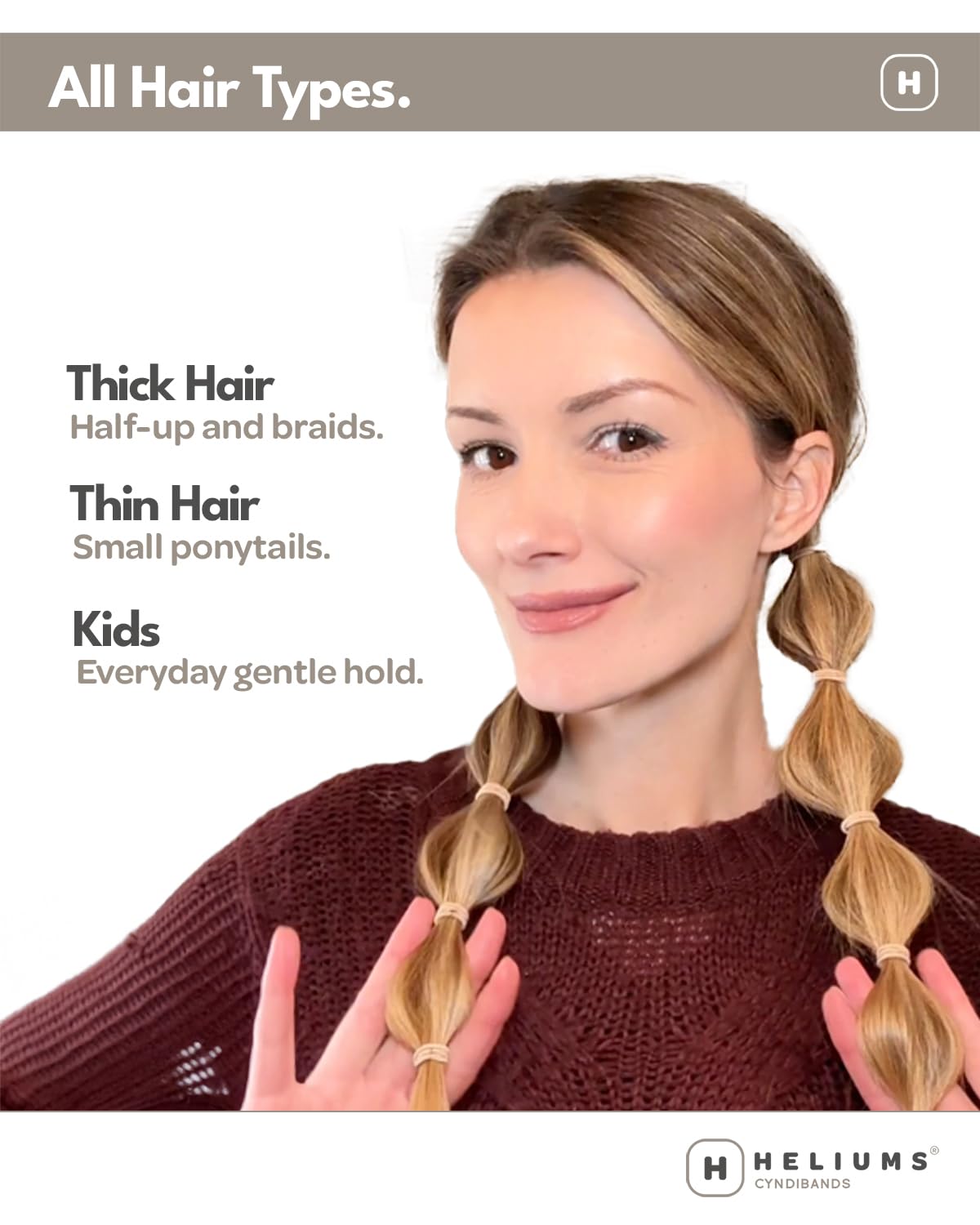 Mini Hair Ties for Fine Hair – Measuring 1 inch across and 2mm thick, these small ponytail holders are perfect for kids and adults with fine or thin hair. Loop twice for ponytails or three times for braids, half-ups, and beards.