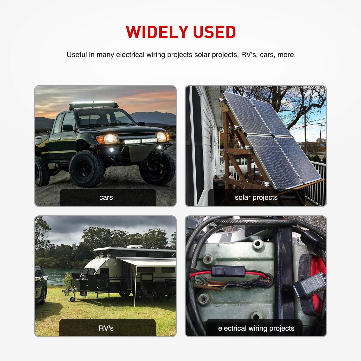 Wide Compatibility: For expansion and maintenance of most batteries and chargers with SAE quick release connectors. Widely used in a variety of batteries, solar panels, automotive vehicles, motorcycles, lawn mowers, ATV, RV, traction motors, kayak, power inverter, tractor and other equipment that requires SAE plugs.