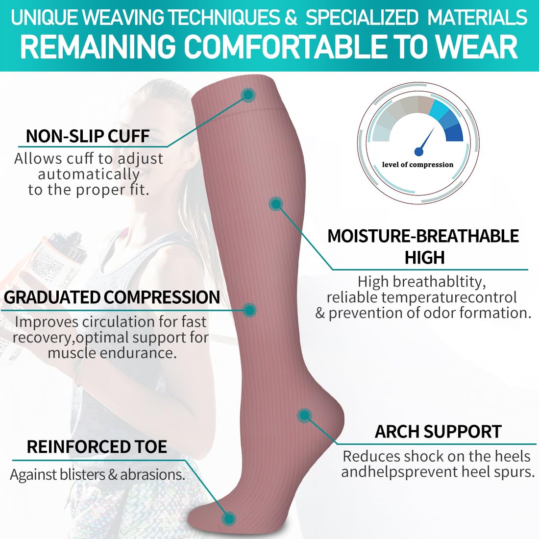 Power of Copper-Copper is most known for being an excellent conductor of heat and electricity, that's Nature's Best Kept Secret. We extended its natural property, through the magic of modern technology, add on the extra benefits of regular compression socks, and then top off the mix with the healing effects of copper. Best copper fibers pulls the electricity from your body to relieve pain, encourages blood to flow more freely which results in less swelling, fatigue, Give you best support!