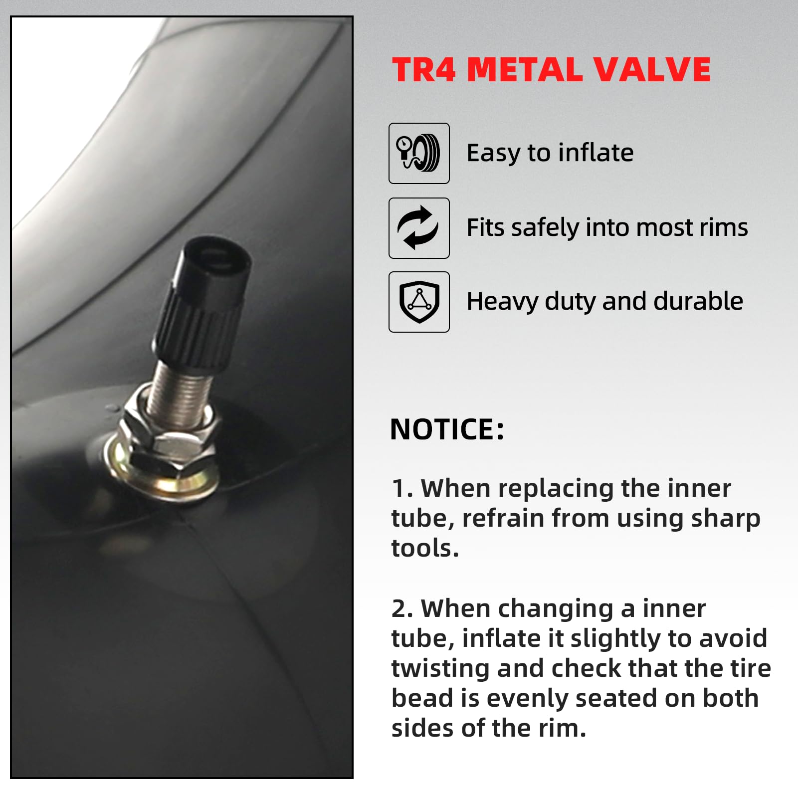 Heavy-Duty Inner Tube: Durable 22x11x10 butyl rubber inner tube with TR4 metal straight valve stem, designed for ATV, UTV, lawn tractors, garden trailers, golf carts, snow blowers and lawn equipment tires. Ensuring seamless fit and high efficiency in demanding environments.