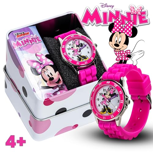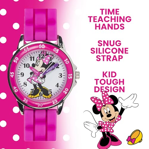 Minnie Mouse dial with labeled hour and minute hands for easy time learning