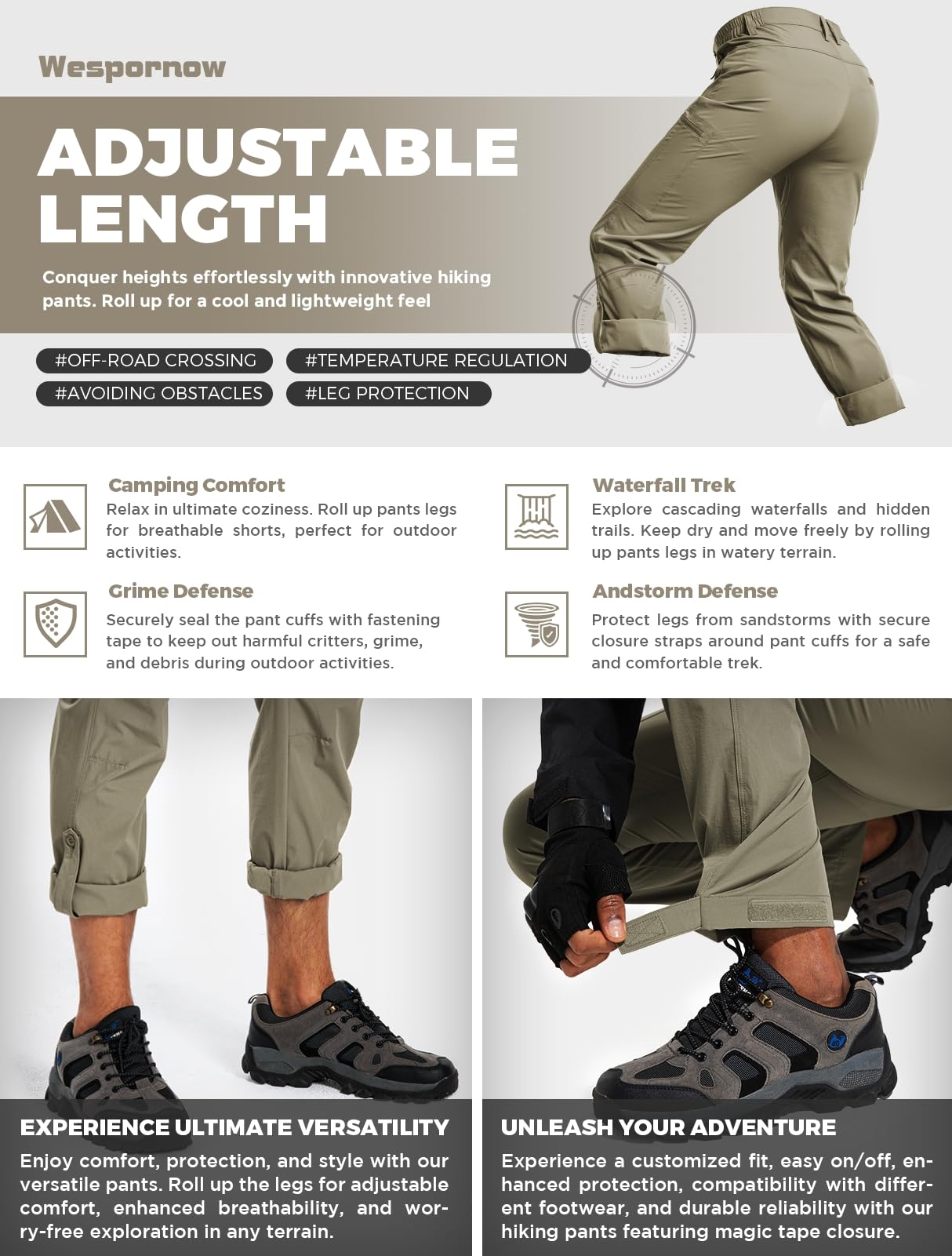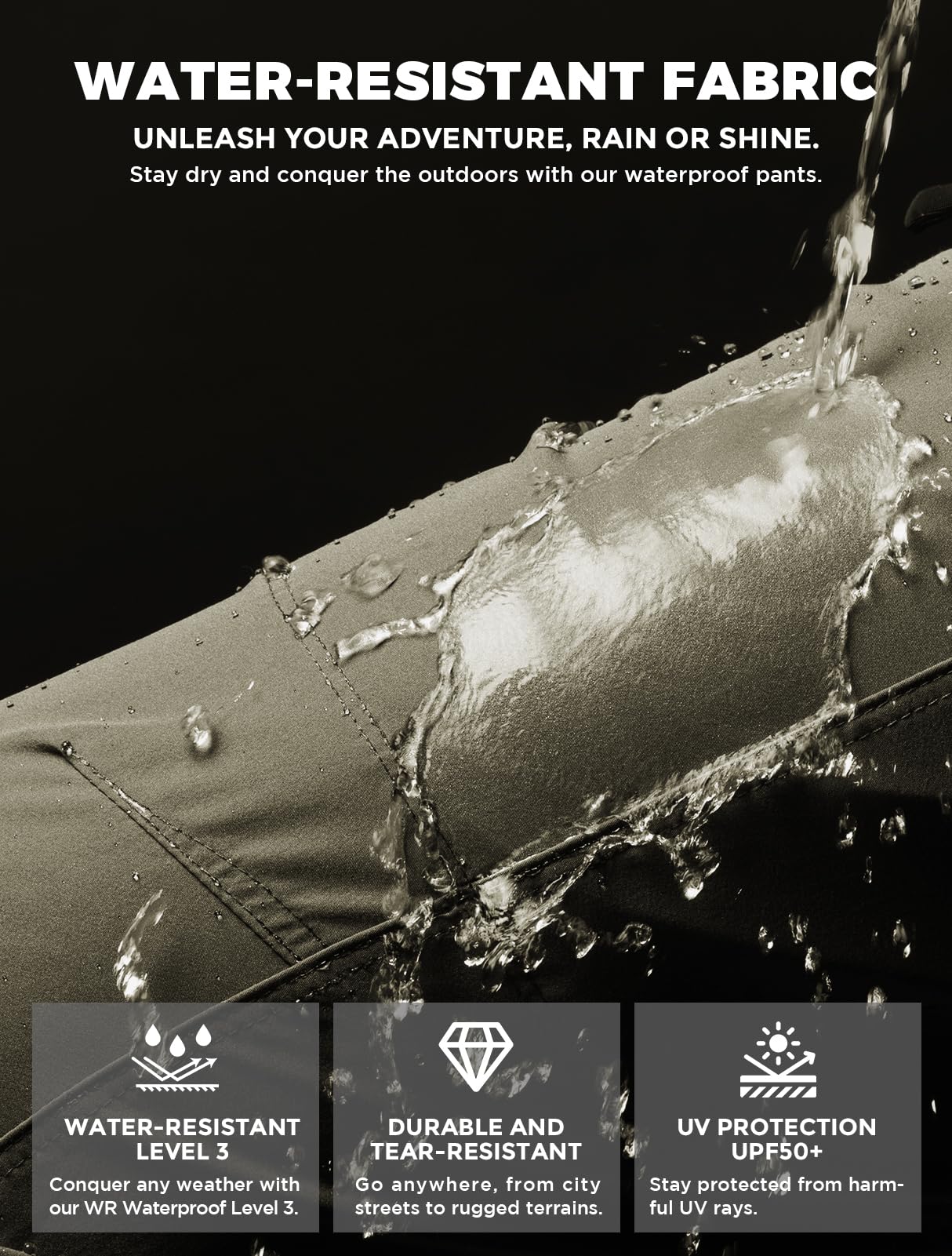 Water-resistance design for all-weather protection: Stay dry in any weather with the waterproof design of these outdoor convertible cargo pants, providing reliable protection from rain and moisture while allowing you to enjoy your outdoor activities in comfort