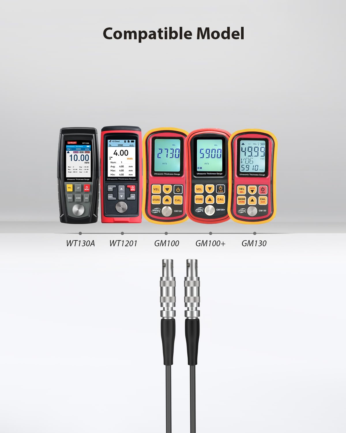 Versatile probe collection: Compatible with multiple models and identical shapes of ultrasonic thickness gauges, including WT130A, WT1201, GM100, GM100+, GM130, etc