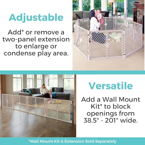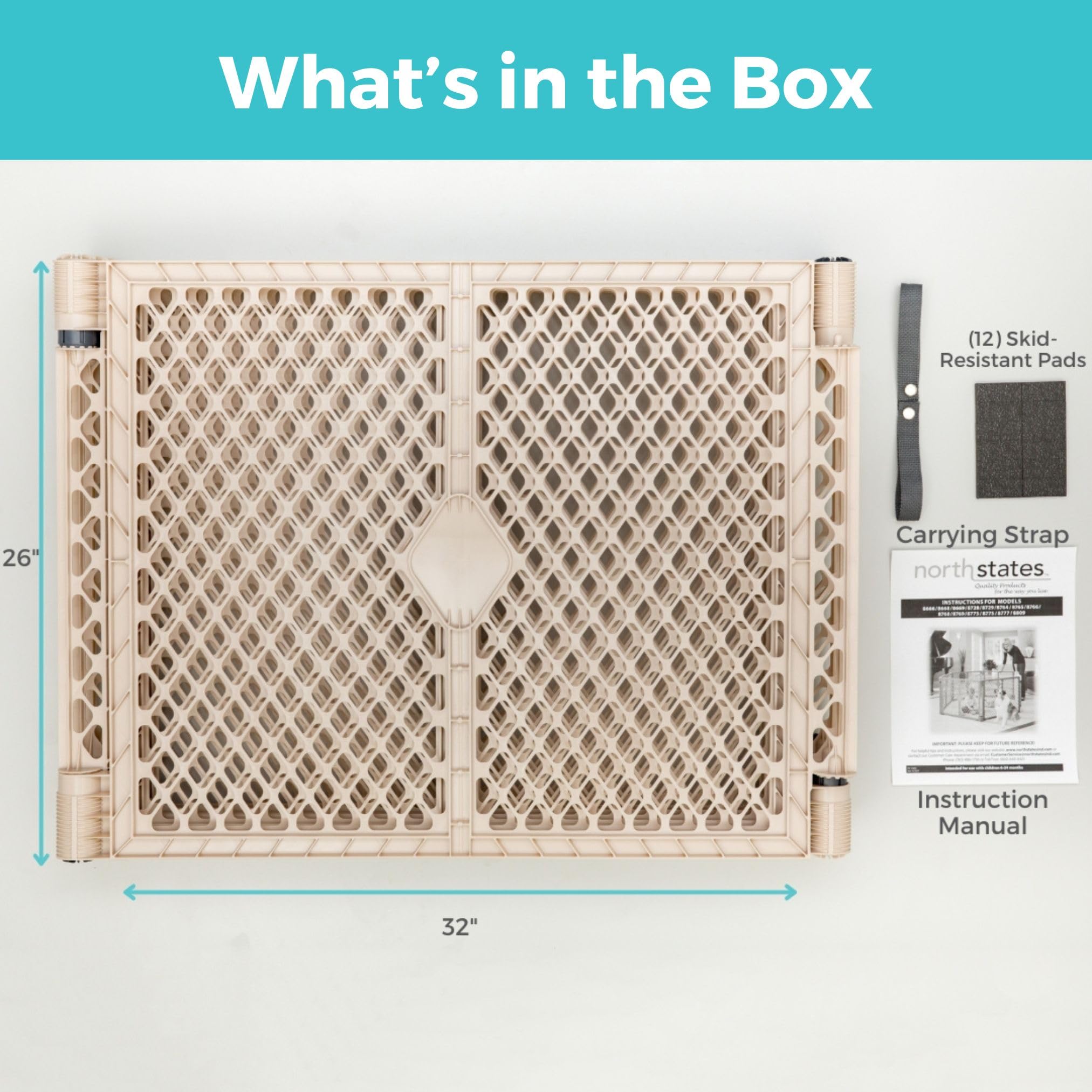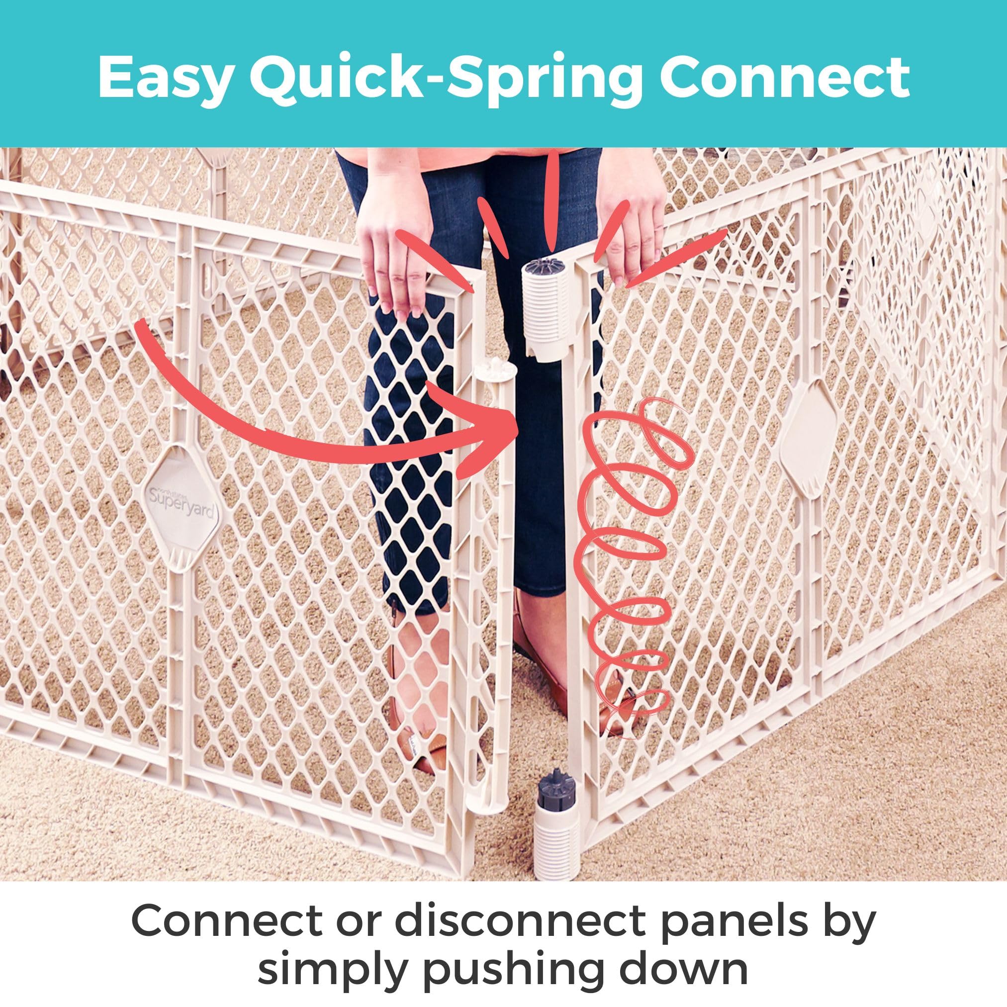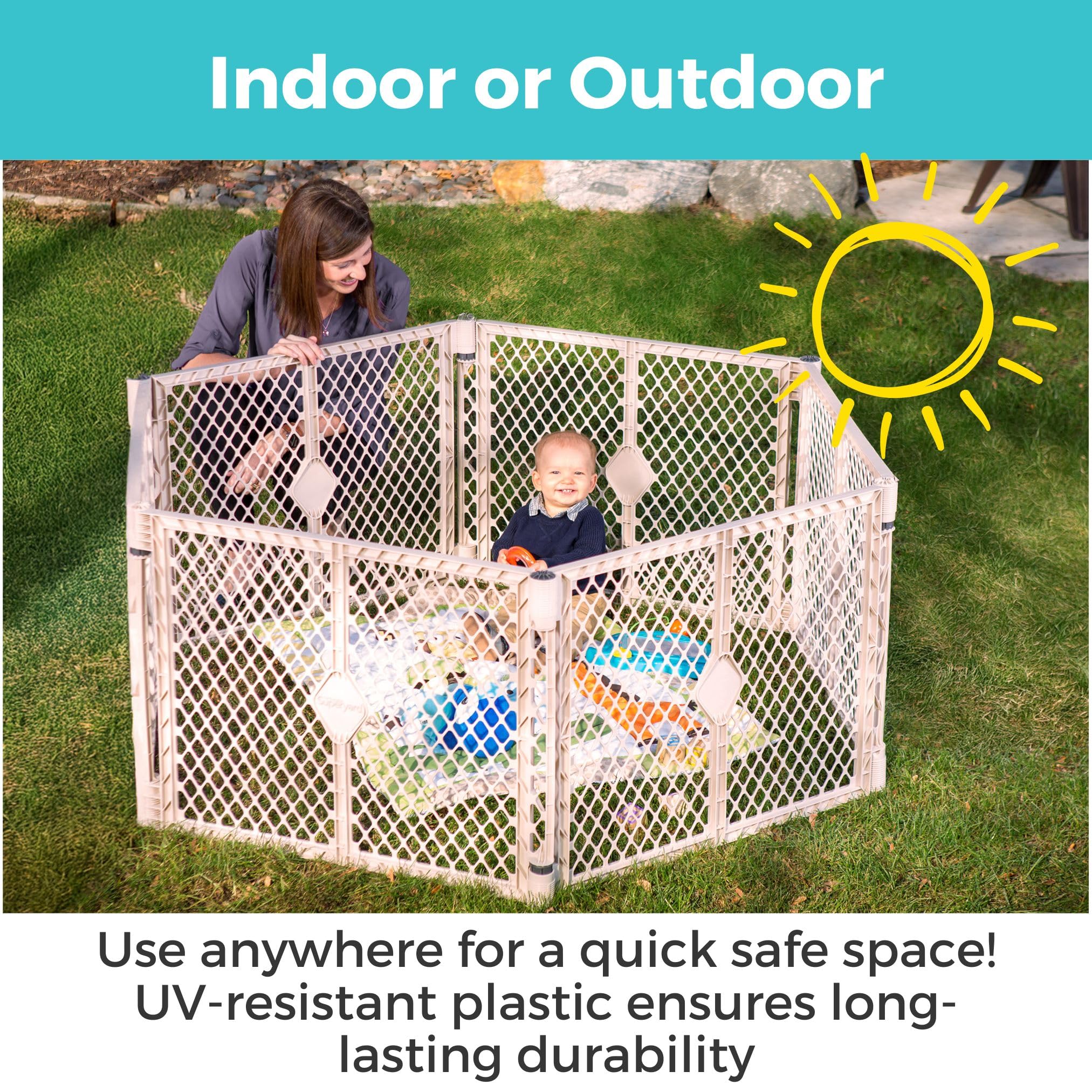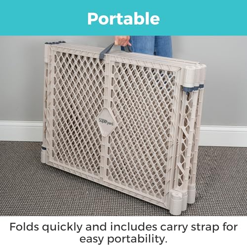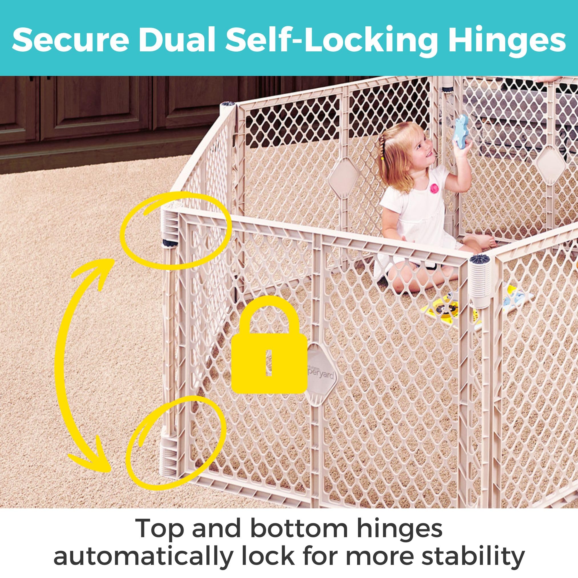 About the Superyard Baby Play Yard: Large spaces make it even tougher to keep tabs on your child! Ensure he or she is safe and secure with our baby playpen designed for indoor or outdoor use. The UV-resistant design keeps colors vibrant and ensures long-lasting durability. The 6-panel play yard encloses up to 18.5 sq. ft. and is 26 in. tall. The 6 pre-connected panels come ready to go, simply unfold and connect the ends together. Our portable baby fence folds quickly and includes a carry strap for easy transport. This baby barrier features SuperGrip feet and skid-resistant pads to prevent movement and protect hardwood floors. The plastic play pen has self-locking hinges that only bend in one direction. The clicking noise ensures the hinges are locked. For added home safety convenience, the play yard can be converted into an extra-wide baby gate using our Superyard Wall Mount Kit (sold separately). Every Toddleroo by North States play yard is JPMA and ASTM certified. Our plastic gates and plastic play yards are made of non-toxic polypropylene and pigments that contain no heavy metals (no lead), no Phthalates or PVCs, and are BPA free. Proudly made in the USA. About Toddleroo by North States: We pride ourselves on U.S. manufacturing because it allows us to maintain the highest standard of quality control. Since 1953, our products have been built by skilled craftsmen and women who are dedicated to making the finest products in America. Our innovative, superior-quality products are designed to achieve the highest standards in safety, durability, and ease of use. You’ll always find us ahead of the curve and on the cutting edge of the industry.