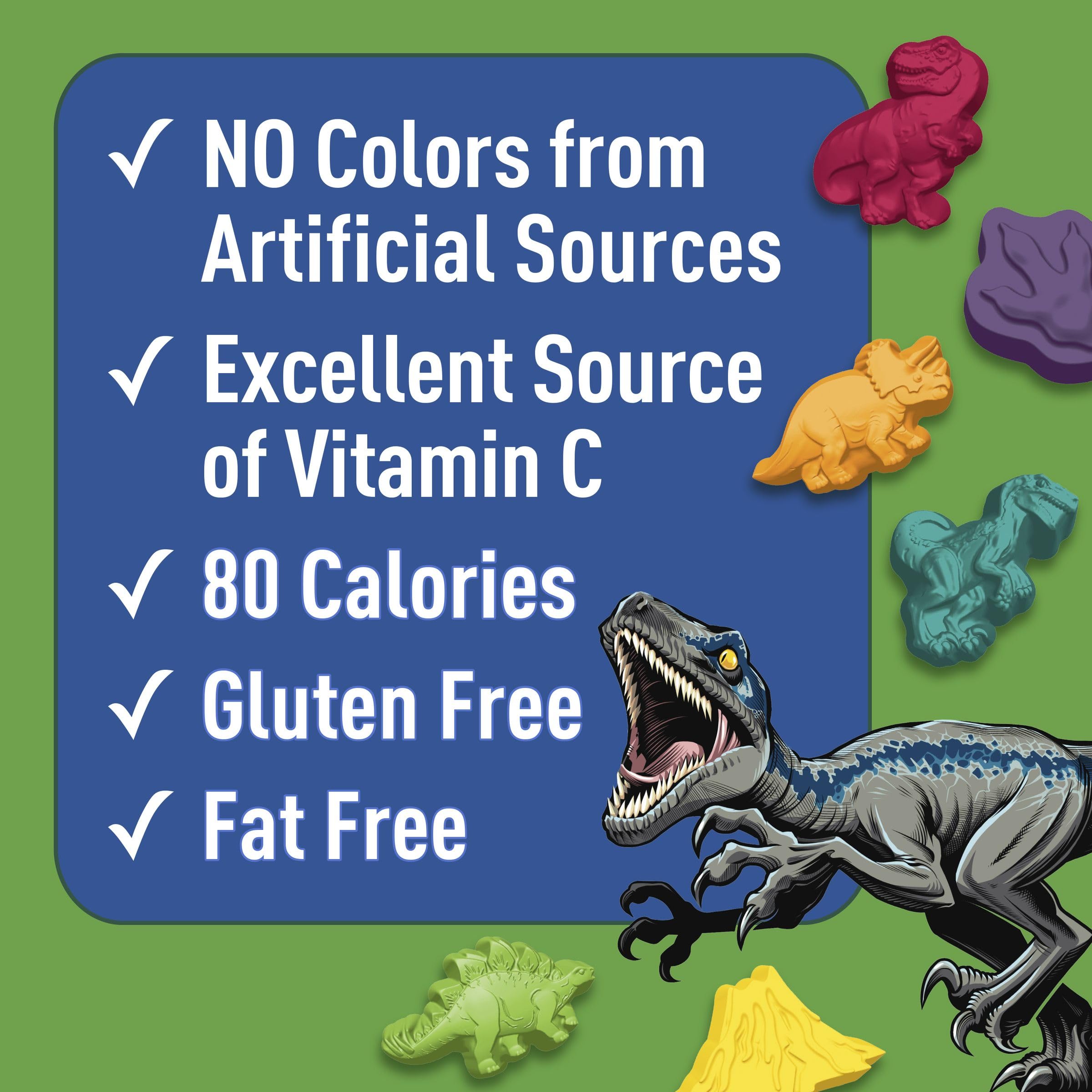 Get your claws on Jurassic World Fruit Flavored Snacks! These delicious treats feature Jurassic World shapes for maximum fun. packaged for on the go convenience and portability, these fruit flavored snacks are a treat the whole family can enjoy. They're handy for including in a packed school lunch box, or when you need a treat on a moment's notice. You've found the ideal after school snack that's a win for you and your kids. Jurassic World Fruit Flavored Snacks are an ideal addition to your pantry and grocery routine. Beyond their great taste, they contain no colors from artificial sources. They have an excellent source of vitamin C, and are gluten free and fat free. Contains one cardboard box of chewy Jurassic World Fruit Flavored Snacks, Gluten Free Snack, 10 Ct, 8 oz.