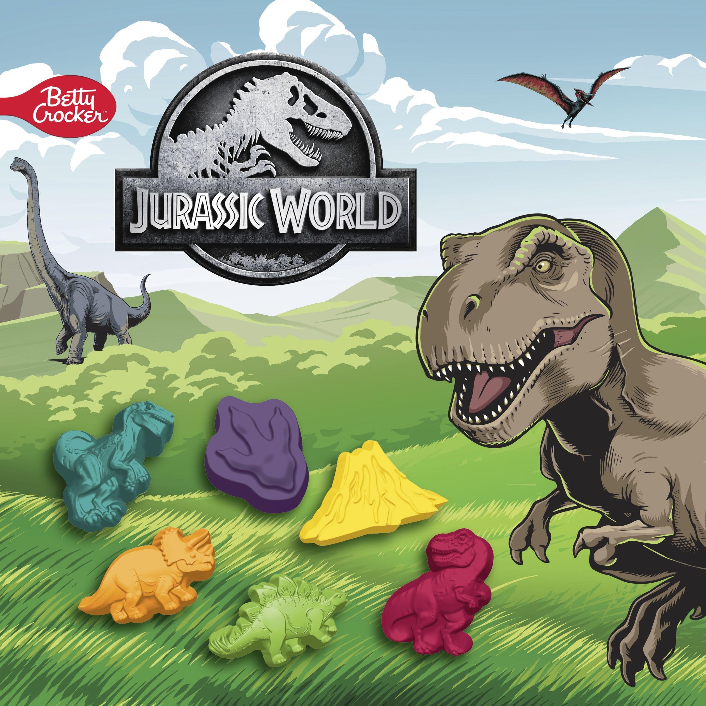 ROARING GOOD SNACKS: Jurassically delicious fruit flavored shapes for maximum fun, including dinosaurs, claw prints, and a volcano