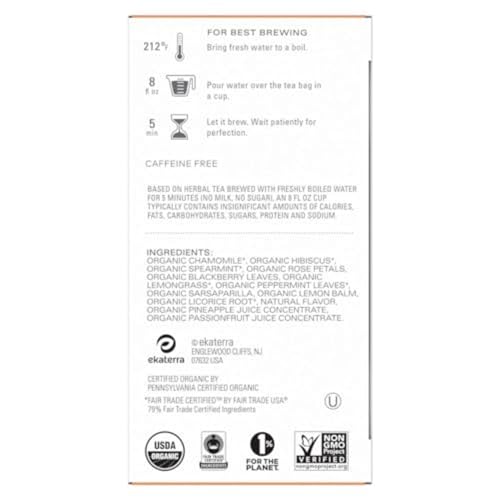 TRUSTED COMPANY: TAZO Teas are produced without genetic engineering, meeting the Non-GMO Project Standard. Ingredients are expertly sourced giving a taste for you to savor
