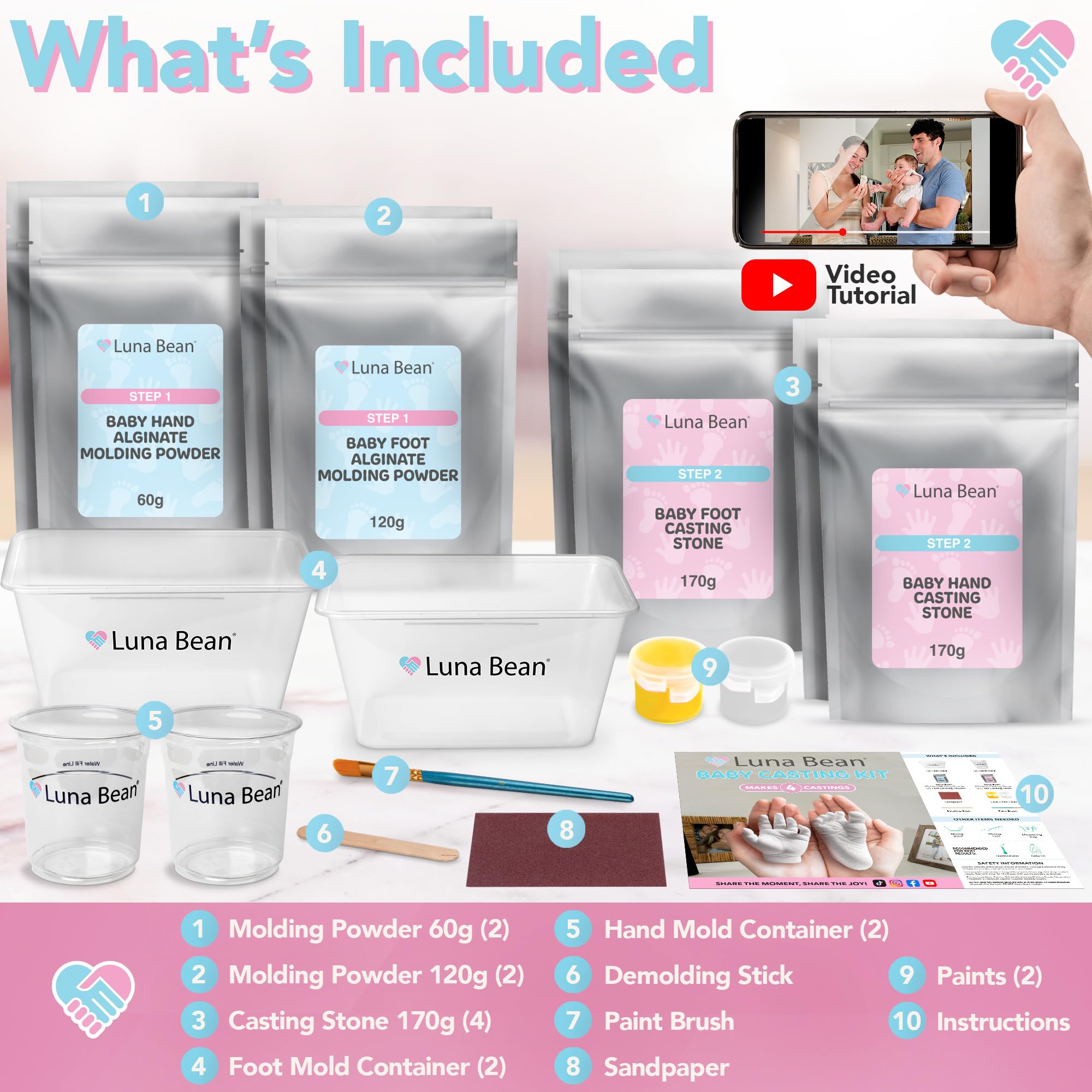 Safe And Gentle For Newborns - Made with non-toxic, hypoallergenic materials, this baby hand casting kit is 100% safe for babies and families. The Luna Bean signature "Create A Mold" gel provides detailed impressions and longer working time for stress-free casting