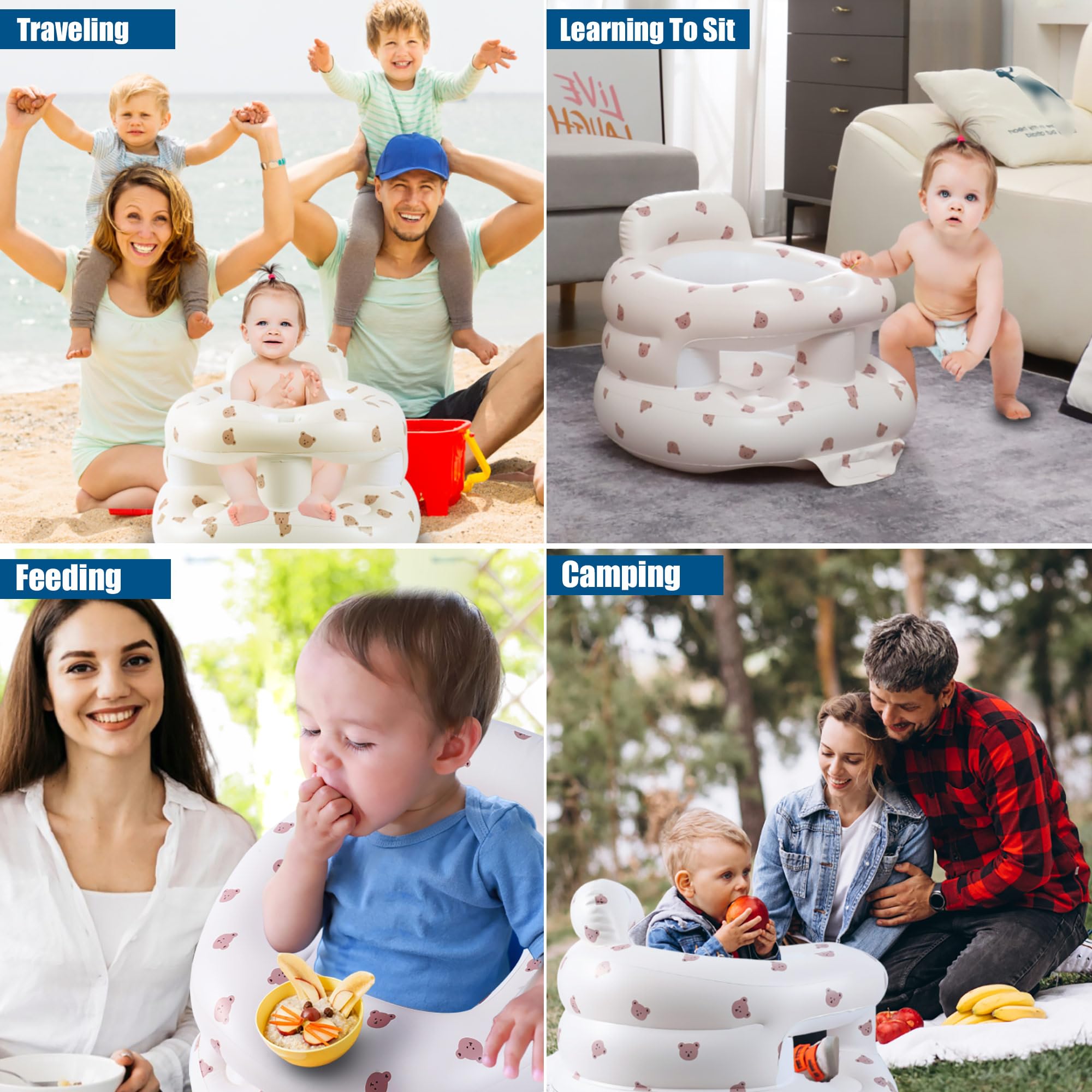 【Multifunctional Use】inflatable baby seat floor seat can be used for learning to sitting up, feeding chair, playing at home, telling stories, Post-deflation, the inflatable baby chair folds neatly for compact storage, ideal for travel, convenient beach or camping seat or any outdoor adventure.sit me up floor seat for baby baby seats for infants for sitting up inflatable baby seat with Guardrails for Babies 3-36 Months