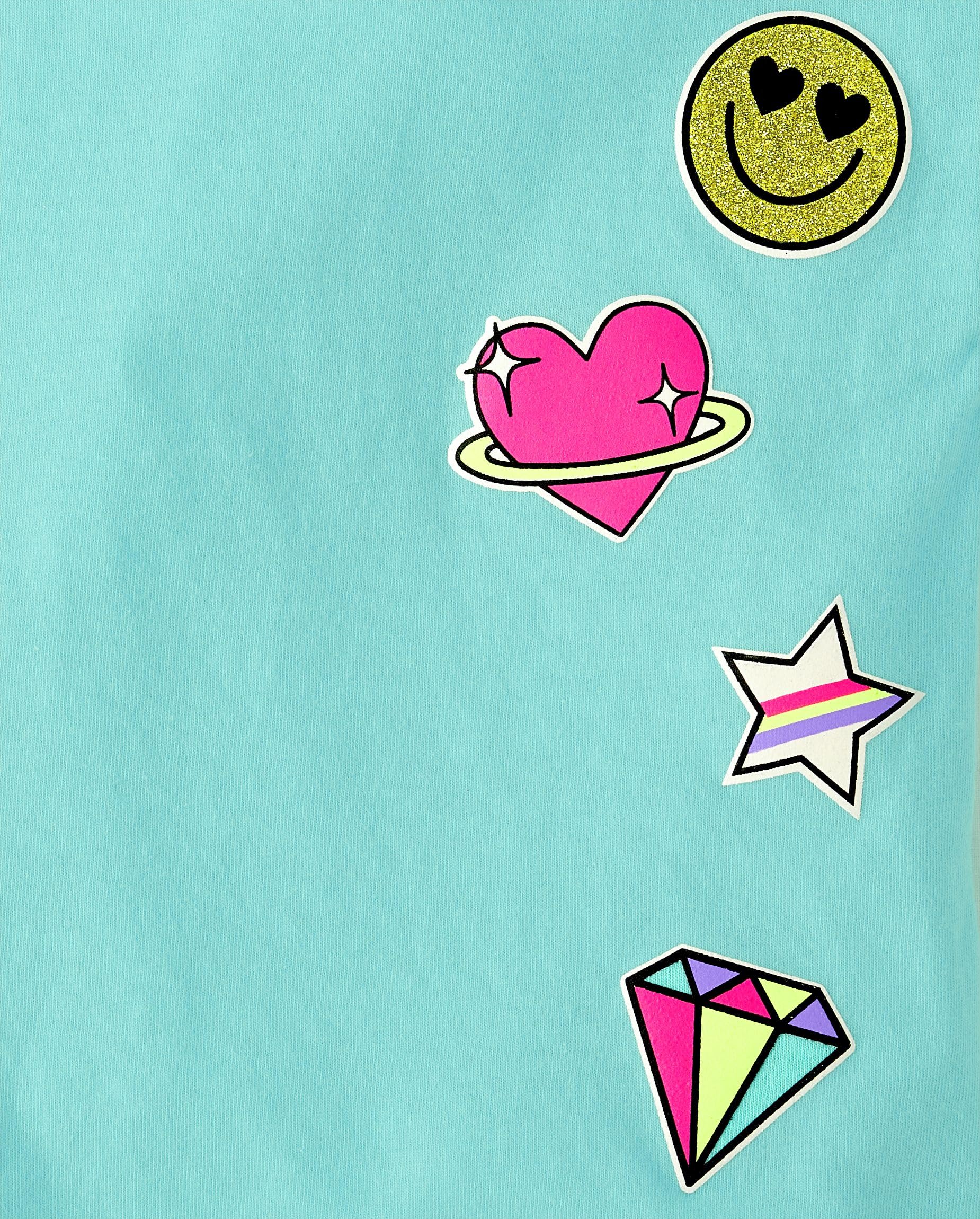 MULTIPACK: 1 tie dye print with tie front hem, 1 solid with heart pocket, 1 solid, 1 smile face, heart, star and diamond graphic