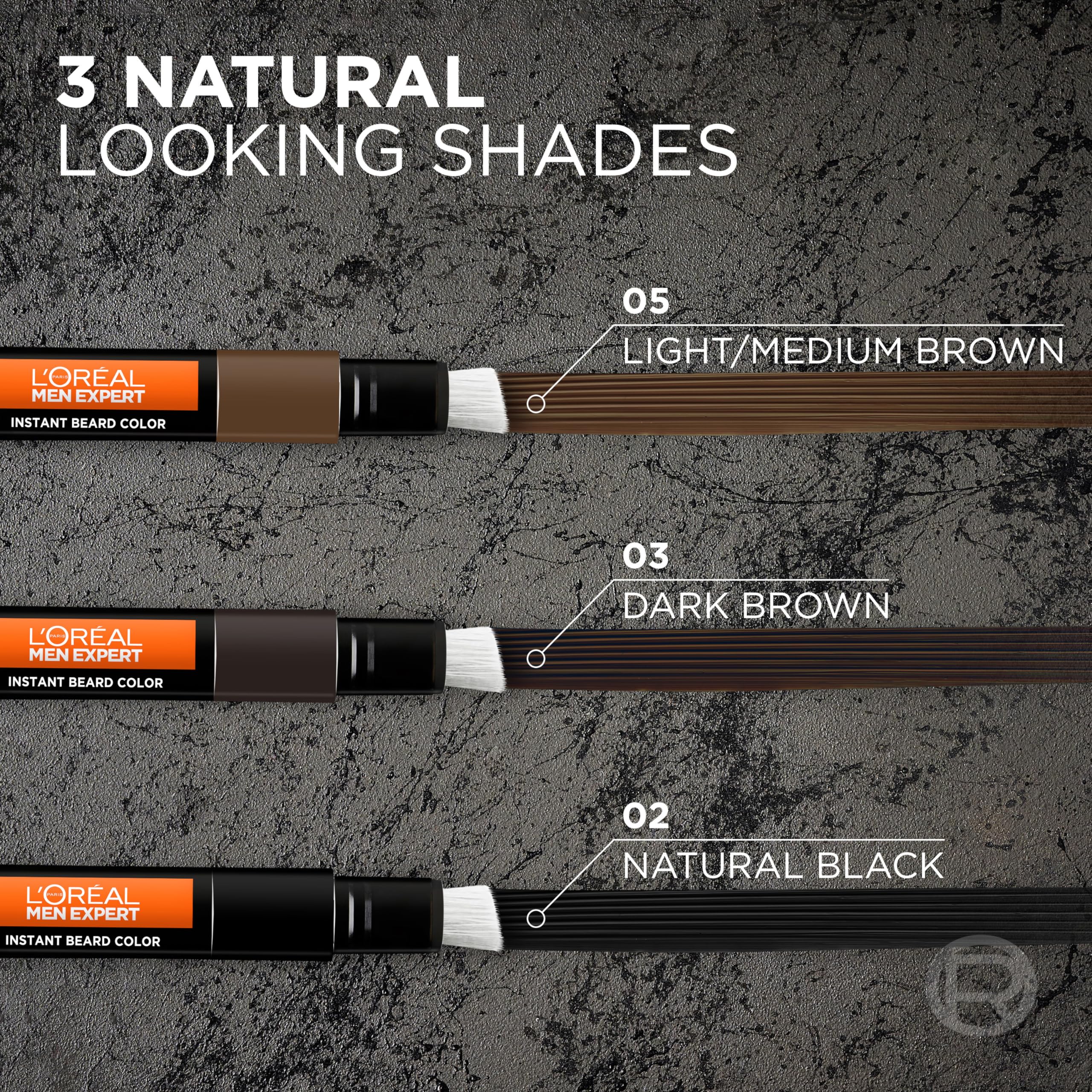 LβOreal Men Expert Temporary Instant Beard instantly covers grays for a natural and fuller looking beard. Instant Beard blends grays and covers uneven and patchy areas. Use the precision pen-like applicator for a quick and easy solution to conceal the grays on your beard. The lightweight ammonia free formula is gentle on the skin. It dries in 1 minute and washes away quickly. Available in three natural looking shades for natural gray coverage.