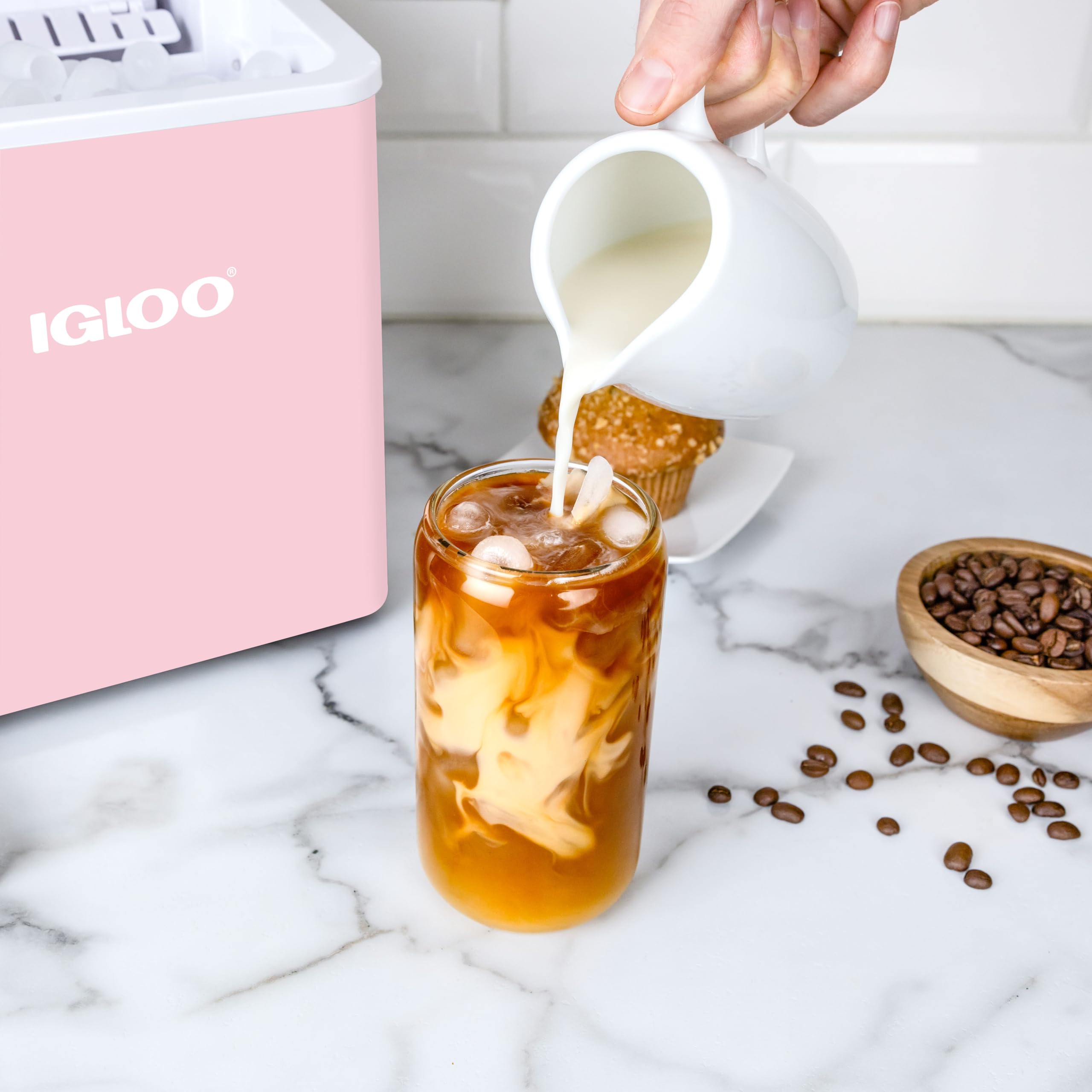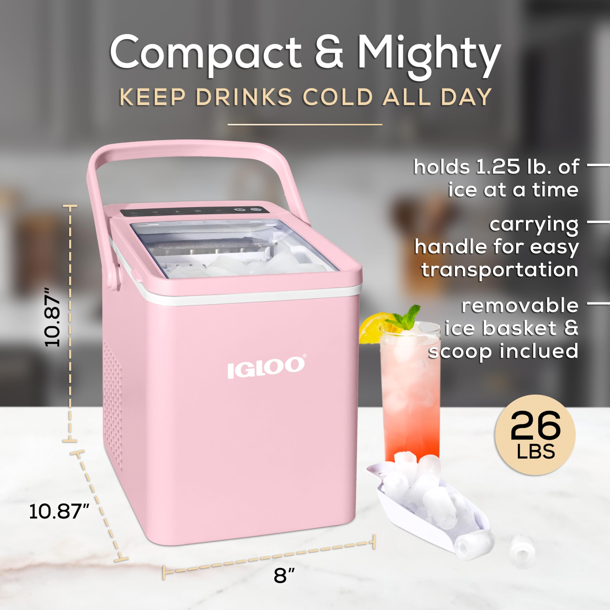 Igloo Portable Ice Maker with Handle & Scoop is the ultimate solution for those who enjoy refreshing cold drinks without the hassle. Whether you're hosting a lively get-together or unwinding after a long day, this efficient ice maker ensures you’ll never run out of ice. Designed to produce up to 26 pounds of ice daily, this countertop ice maker delivers fresh, crystal-clear cubes quickly and conveniently. It’s perfect for making ice for everything from chilled water and smoothies to cocktails and cold brew coffee. With its modern design and compact size, it fits effortlessly into any kitchen, RV, or office space, making it an indispensable companion for your ice-making needs. Designed with convenience in mind, this portable ice maker takes the effort out of keeping drinks cold. It produces nine cubes in just seven minutes, ensuring that you always have ice when you need it. The innovative self-cleaning ice maker feature saves you time and energy by keeping the machine spotless with a simple push of a button. You can now enjoy perfectly formed ice at your fingertips without worrying about constant maintenance. Its sleek, compact design ensures it fits seamlessly into small spaces, making it ideal for both home and portable use. For those who value efficiency and versatility, this ice machine maker countertop is your go-to solution. With a 1.5-quart water tank, it consistently produces ice at an impressive rate, keeping your drinks chilled and refreshing all day long. Whether you're using it at a family BBQ, on a camping trip, or in a busy office, this reliable ice maker machine is ready to serve. Our compact ice maker offers incredible performance in a small package. Despite its size, it can produce 26 pounds of ice each day, making it perfect for a variety of events and everyday use. Its low-noise operation ensures you can enjoy ice without any interruptions, whether you’re working in your home office or hosting a movie night with friends.
