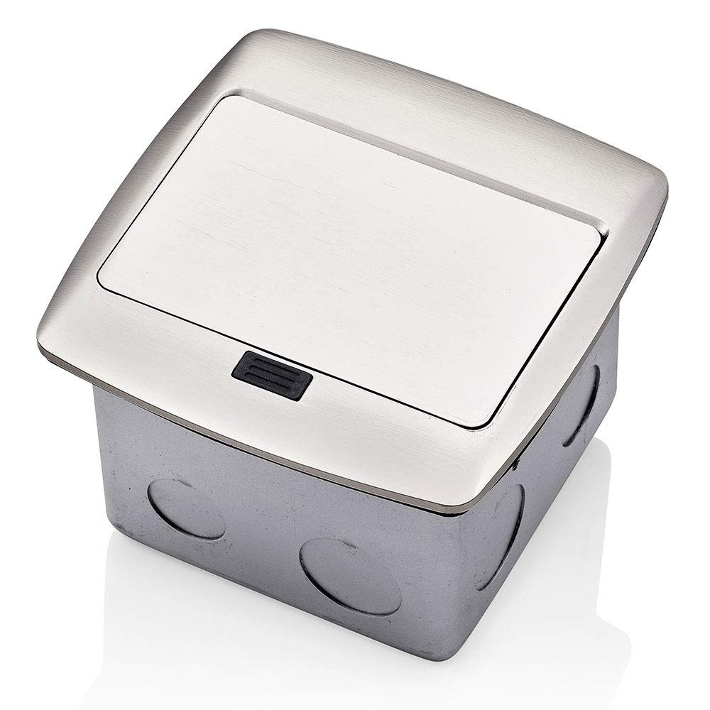 Pop-Up Floor Box with Combination Duplex Receptacle/Outlet and USB charger. 20 Amp, 125 Volt, Decora Tamper-Resistant Receptacle/Outlet, NEMA 5-20R, 3. 6 Amps, 5VDC, 2. 0 Type A USB Charger that is pre-wired to terminal block – Brushed Nickel