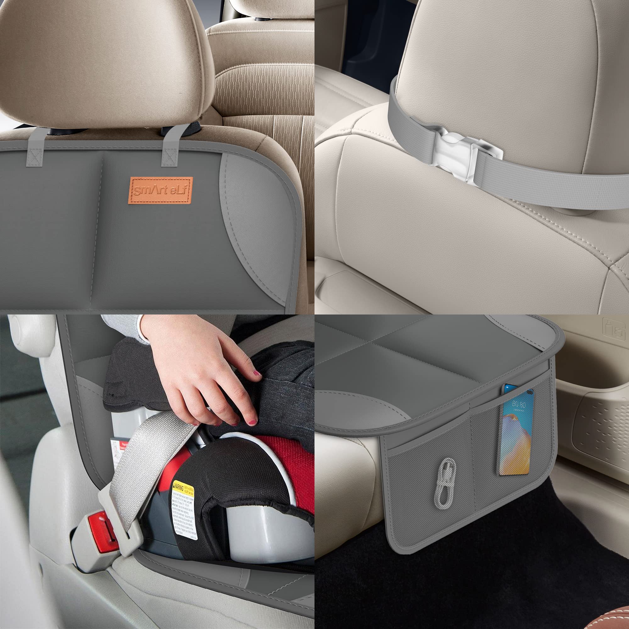 🚗SMART ELF Car Seat Protection - a must-have for parents, pet owners, and travelers who want to protect their car's interior from stains, wear and tear. ✅Extend the Life of Your Upholstery ✅Protect your car against stains and smells. ✅Reduce the dentation caused by the baby seat. Parent's Perfect Assistant Fit for children baby car seat, or pets. Protect from mashed food/drink/pet footprint etc. it is convenient to family travel. Multipurpose use on Front & Rear car seat protection, just use vacuum cleaner that can easy clean up. Not Easy to Fade & Not Stain the Seat This car seat cover made of high quality 600D Oxford fabric and PVC leather protects the car leather seats from water stains,debris and sweat,can use a damp cloth to wipe away dirt caused by food spills or pet saliva,These materials are safe and heat -resistant,No need to worry about soiling the light leather seats in summer 🚗Easy to install Step 1: Put the waterproof child car seat cover protector right on the car seat (backseat or front seat). Step 2: Insert padded belt into the car chair crevice to fasten the cover. Step 3: Fasten the safety straps. Then tie the cover securely to the headrest. Conform and adjust to your need.