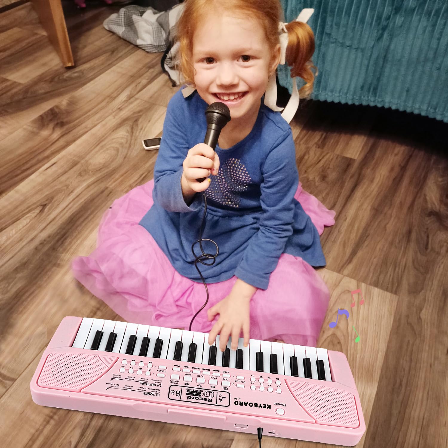 Upgraded Multifunctional Piano -- 37 Keys kids piano with 19 demos, 8 rhythms, 8 tones, 4 drum sounds and 4 animal sounds. The piano is equipped with stereo dual speakers, the cooperation of left and right speakers can form a stereo effect, which can bring an excellent sound experience to your kids and let your kids feel the charm of the piano.