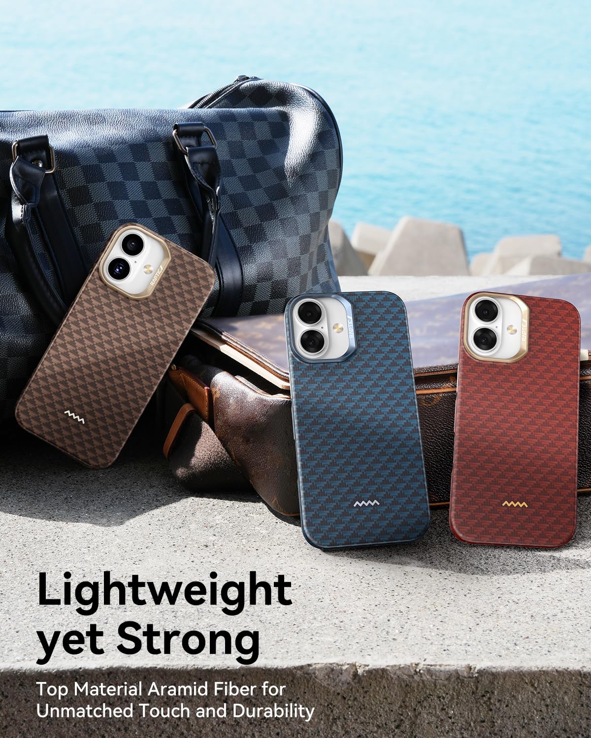 [Ultra-Light Military-Grade Defense] Crafted with aerospace-grade aramid fiber 5x stronger and 50% lighter than steel, this featherlight shield delivers military-grade protection without bulk. Unlike carbon fiber, its precision-woven structure ensures zero signal interference with non-conductive durability that resists scratches, discoloration, and yellowing - all while maintaining a cloud-like 0-gravity grip.