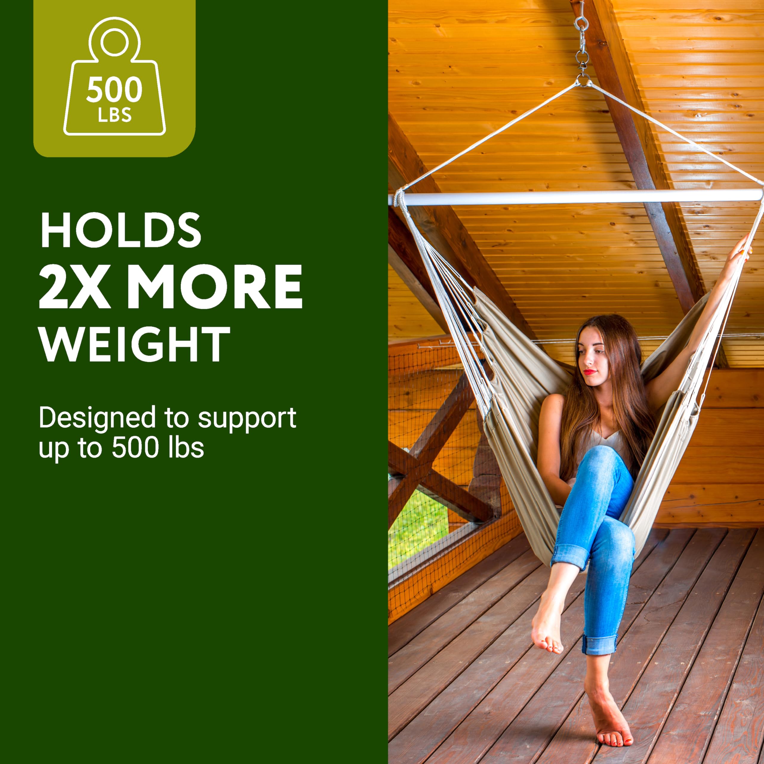 Sturdy Support & Versatility: The IMPRESA Hammock Chair Swivel Hook is engineered to bear up to 500 pounds, making it a reliable choice for both indoor and outdoor use. This swivel hook for hammock is compatible with a wide range of hanging hammock chairs, adding versatility to your space