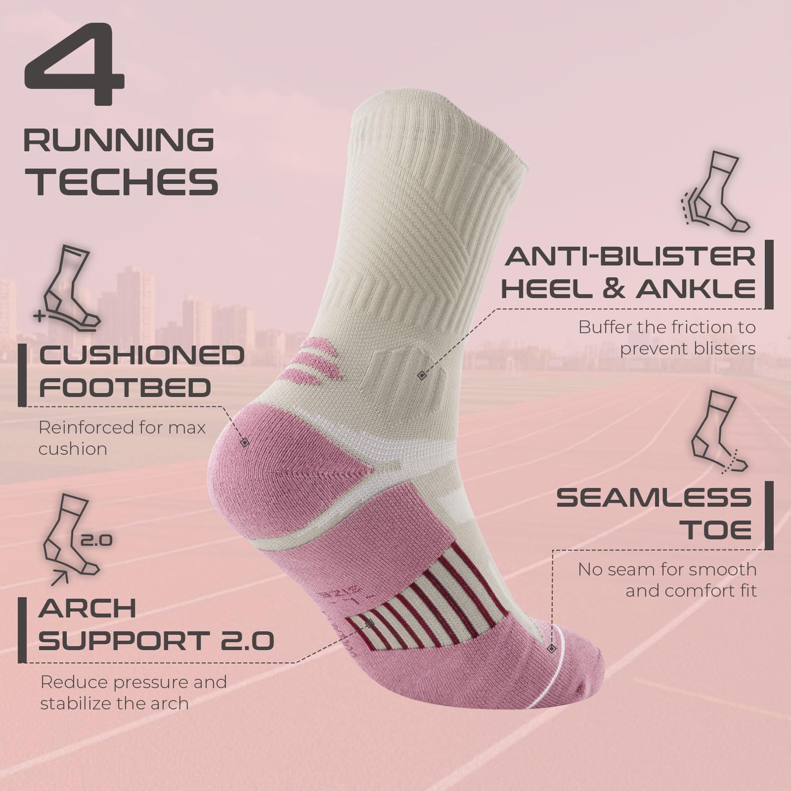 Seamless Toe for Uninterrupted Comfort – Womens padded socks a smooth, irritation-free toe seam ensures maximum comfort and enhances performance with every stride.