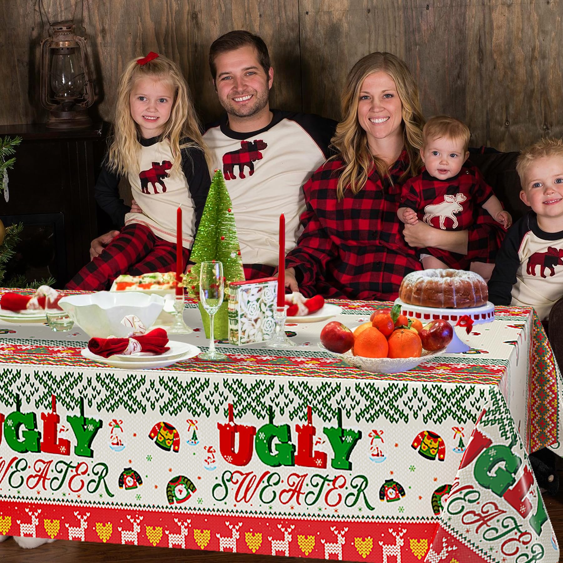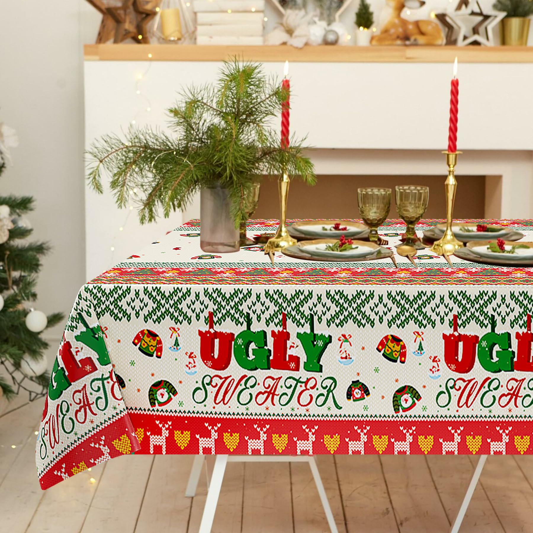 Quality Material: The ugly sweater table cover is made of high quality plastic with a smooth and soft surface, which has good waterproof properties and protects your table from stains such as food and drinks. Meanwhile, the smooth surface also makes it easy for you to clean the stains on the tablecloth