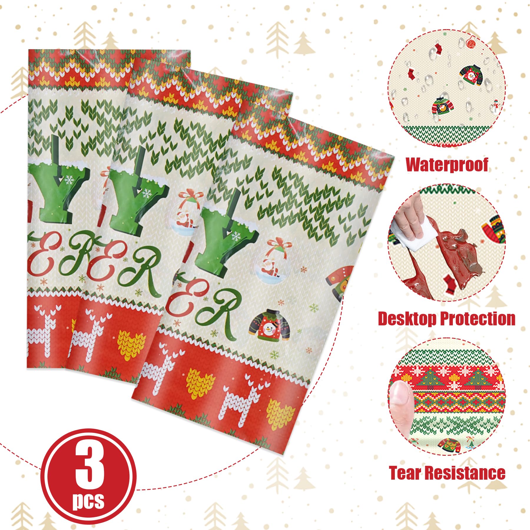 Tablecloth Package: Our package includes 3 pcs ugly sweater theme tablecloths, each size is 51*86 inches/130*220 cm, suitable for most of the dining tables. It can meet your needs for ugly sweater party or Christmas and New Year festivals