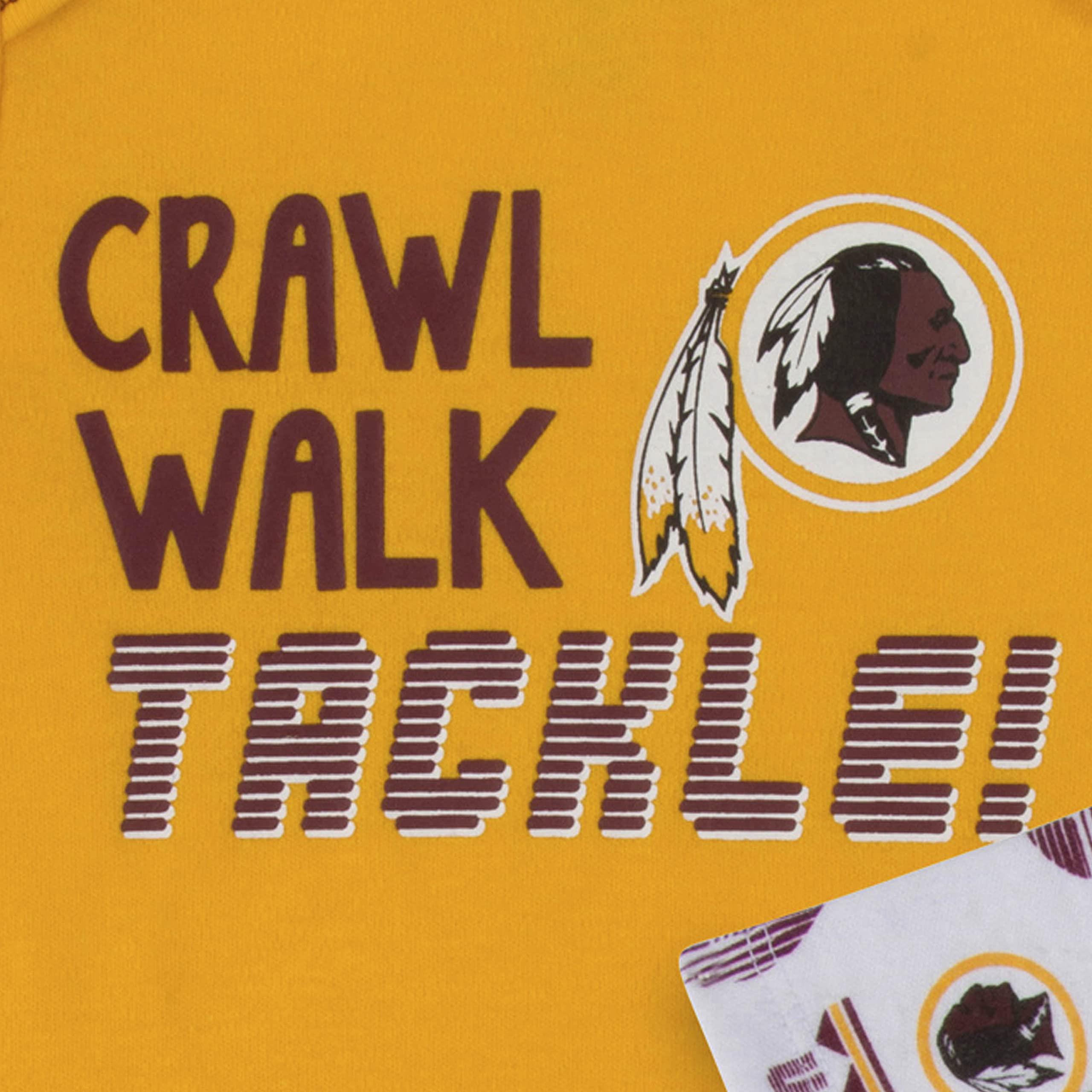 Description Itβs time for the whole family to cheer on the team! These officially licensed NFL bodysuits are the gear your little one needs for game day. Your baby will stay comfy throughout the entire game (and day!) in the cotton/poly interlock of these NFL baby bodysuits. The bodysuits feature expandable lap shoulder necklines to keep changes comfortable and quick. The bodysuits feature a variety of designs and patterns that show off babyβs team pride. The bottom snaps are positioned for convenient diaper changes, so taking breaks from the game donβt last longer than they need to. These baby boysβ bodysuits are a great choice for warm or cool game days, as they may be layered over or worn all on their own. These bodysuits are machine washable for your convenience. Show your team spirit by dressing the whole family for the upcoming season!