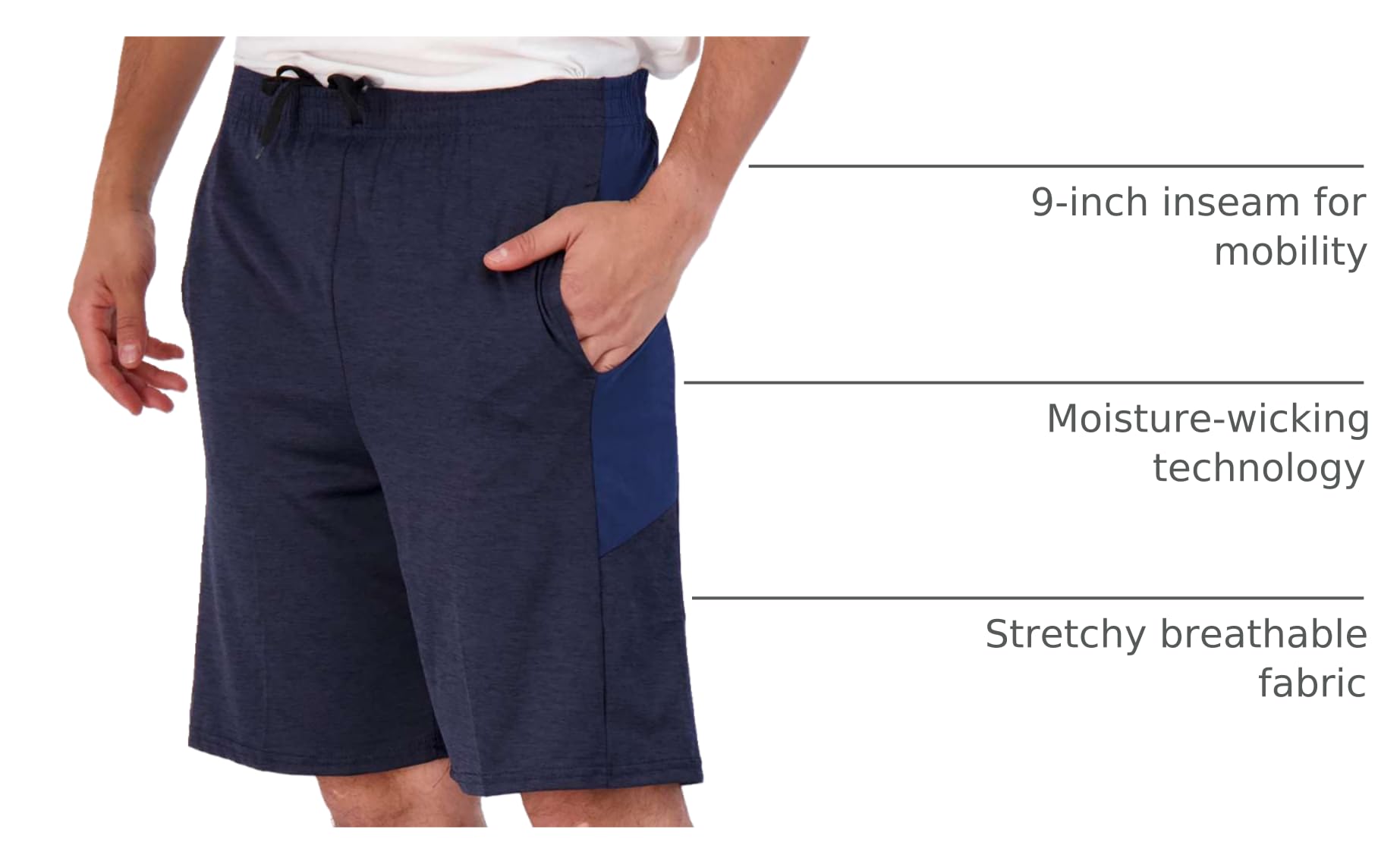 5 Pack Menβs Dry-Fit Shorts: Real Essentials menβs 9" inseam shorts for gym, basketball, running, soccer, tennis, pickleball, cycling, baseball, training, walking, jogging, or MMA workouts.