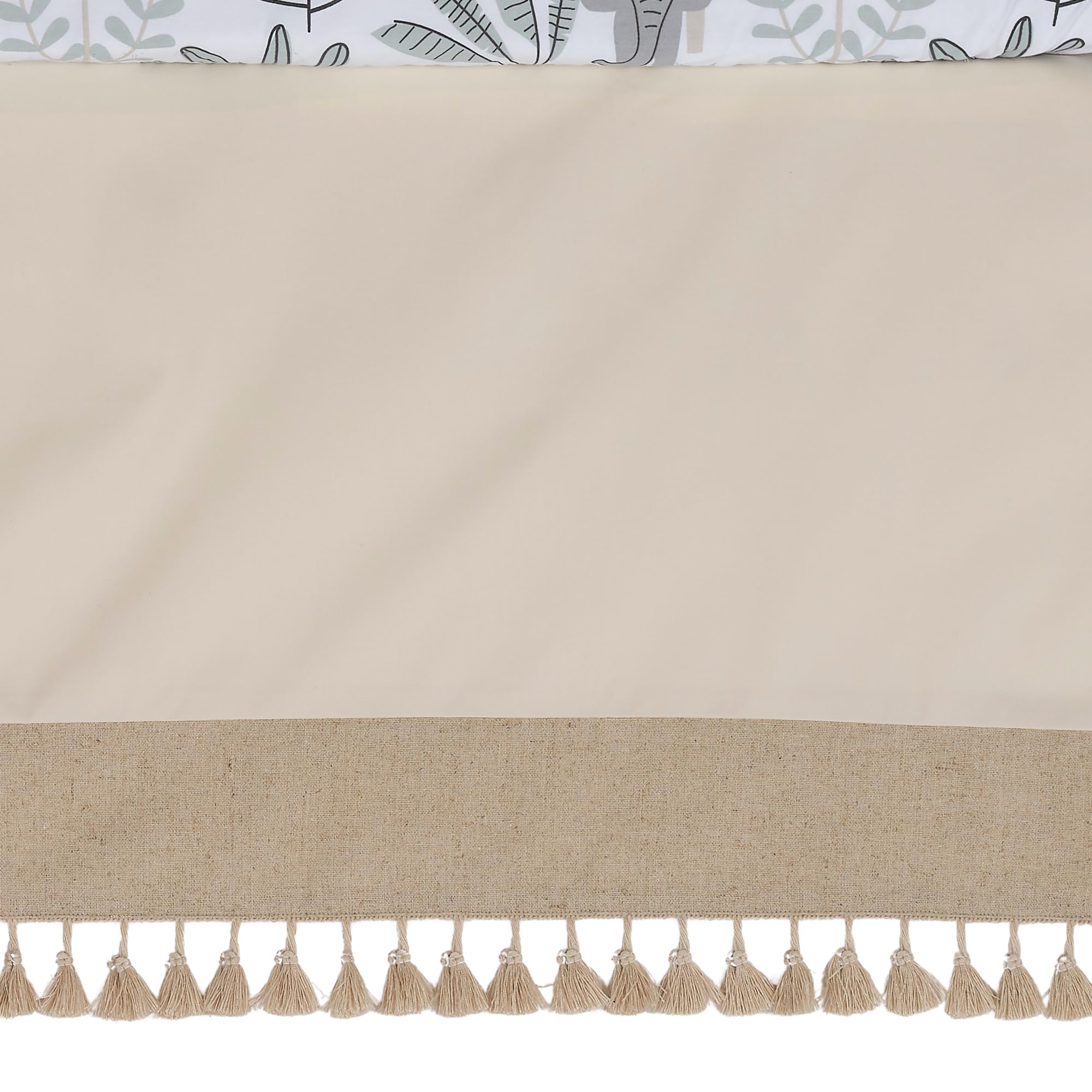 The decorative crib skirt with tassel trim has 16 inch long drop