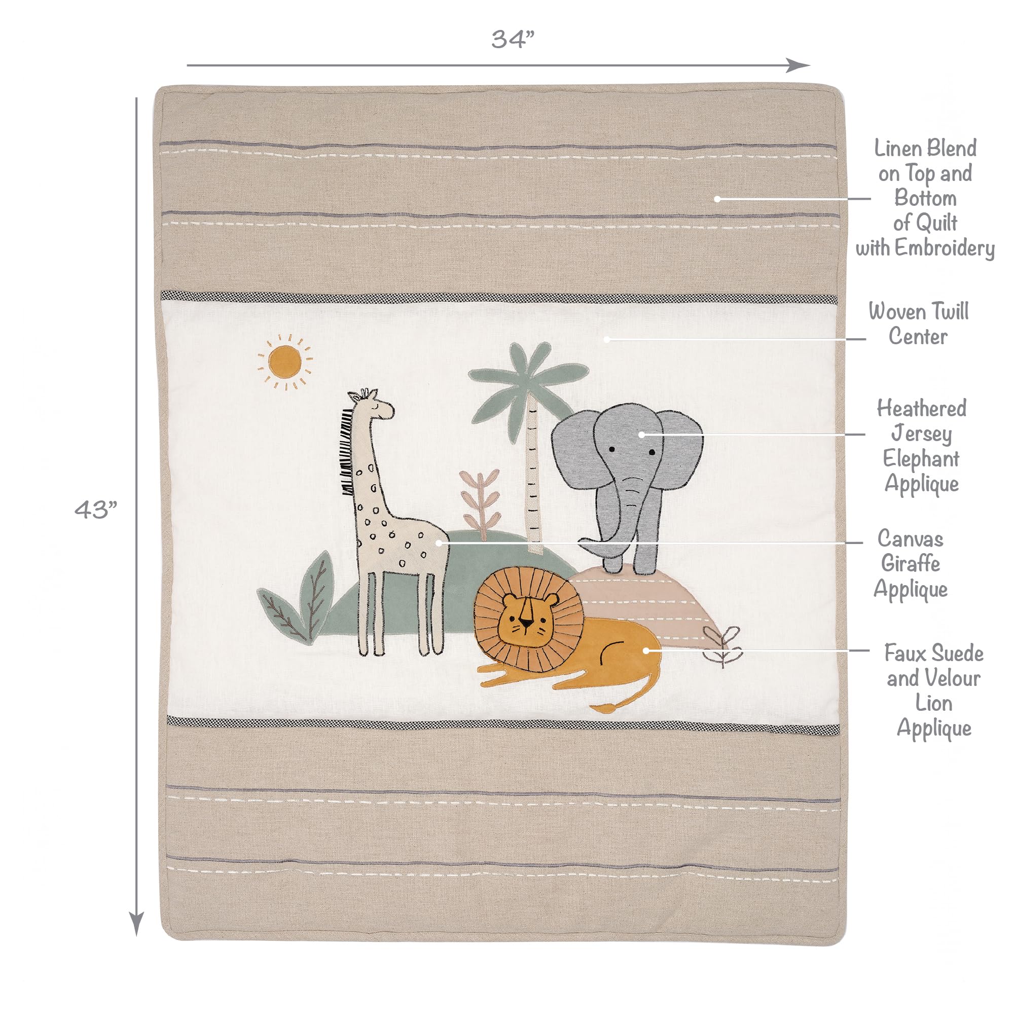 Your little adventurer will love this stylized jungle/safari crib bedding set