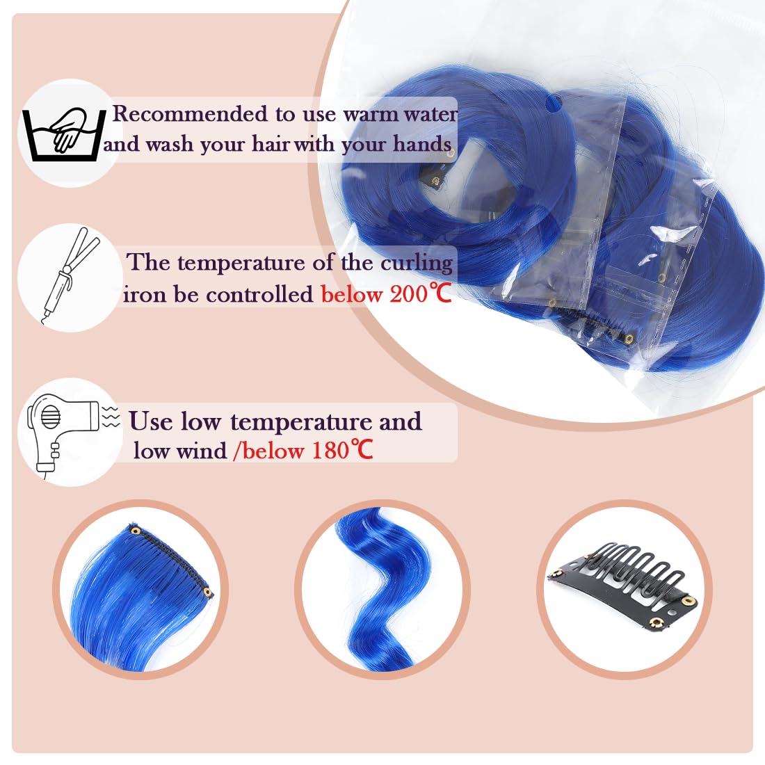 2. High-quality material: Using high-quality high-temperature resistant synthetic fibers, it is harmless to the human body. You can use a curling iron or a straightening iron to redesign your hairstyle according to your personal preferences. The colors are rich and varied, which can replace hair dyes and reduce the damage of hair dyes to the hair and scalp.