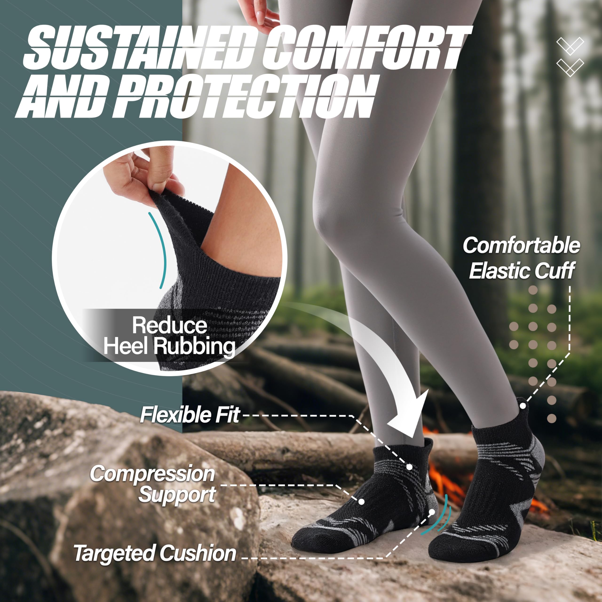 PROTECTION FOR FEET : High stretchy fabric keeps socks fit snugly and prevents slipping.Targeted cushioning has better shock absorption, which can reduces the foot soreness.Engineered heel and smooth toe do not grind your feet and avoid blisters , providing the most comprehensive protection for your feet.