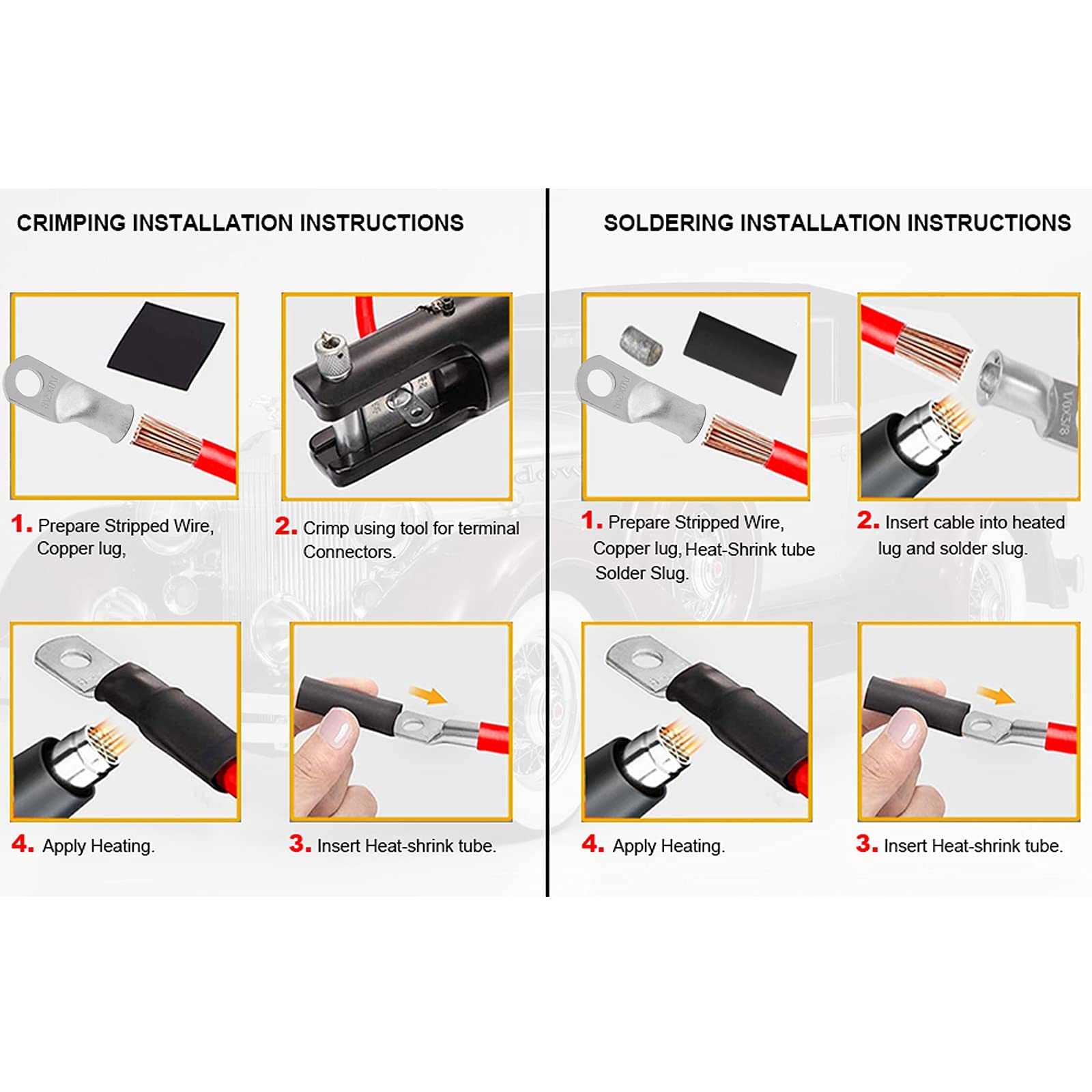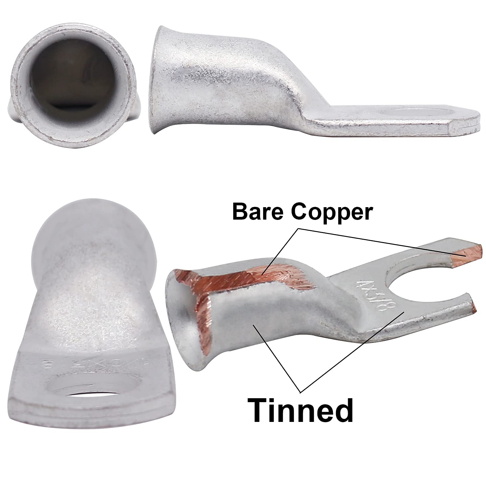 【Wide Applications:】These Copper Lugs works with Heat Shrink Tubing which are safe and reliable , ideal for marine, automotive,distribution box, golf carts, solar panels, marine,home applications,Vehicle,Motorcycle,DIY Electrical Wirings and Other Outdoor Applications.